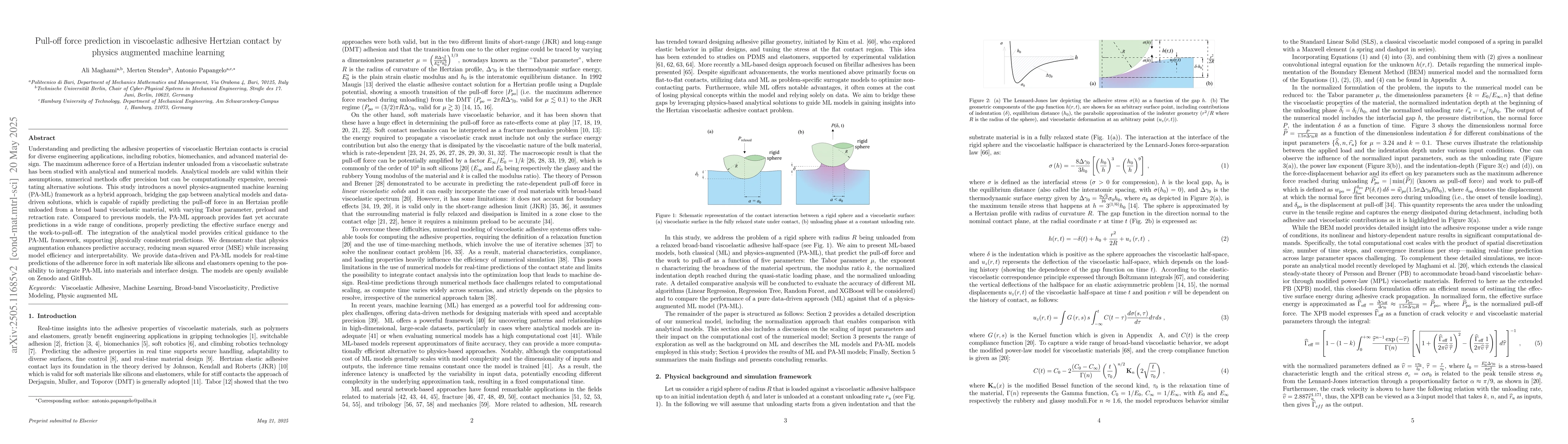 The research introduces a physics-augmented machine learning (PA-ML) framework, integrating an analytical model with a data-driven approach to predict pull-off forces in viscoelastic Hertzian contacts.