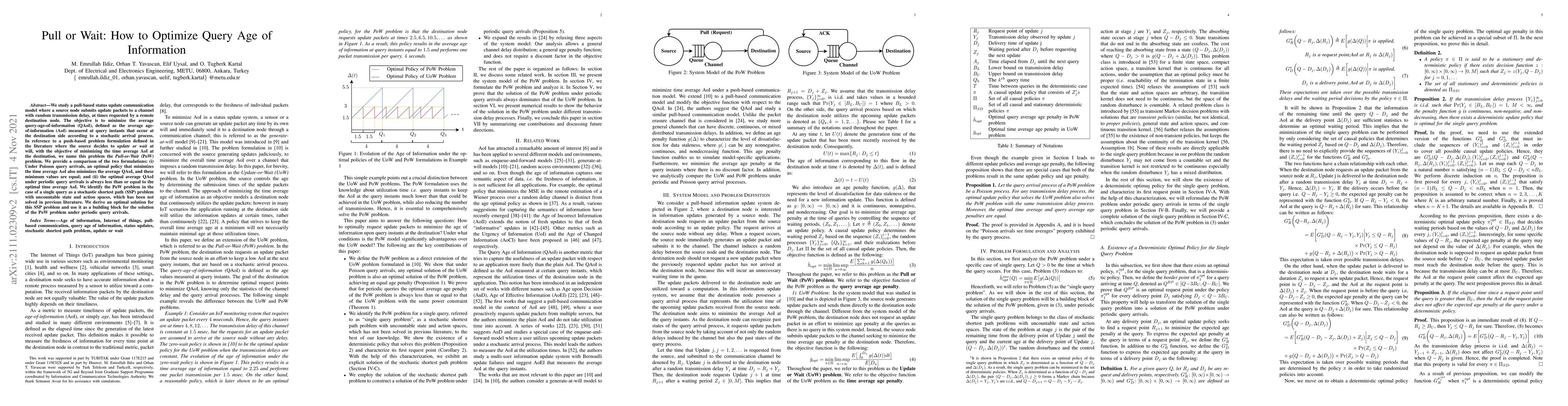 We study a pull-based status update communication model where a source node submits update packets to a channel with random transmission delay, at times requested by a remote destination node. The objective is to minimize the average query-age-of-information (QAoI), defined as the average age-of-information (AoI) measured at query instants that occur at the destination side according to a stochastic arrival process. In reference to a push-based problem formulation defined in the literature where the source decides to \textit{update or wait} at will, with the objective of minimizing the time average AoI at the destination, we name this problem the \textit{Pull-or-Wait} (PoW) problem. We provide a comparison of the two formulations: (i) Under Poisson query arrivals, an optimal policy that minimizes the time average AoI also minimizes the average QAoI, and these minimum values are equal; and (ii) the optimal average QAoI under periodic query arrivals is always less than or equal to the optimal time average AoI. We identify the PoW problem in the case of a single query as a stochastic shortest path (SSP) problem with uncountable state and action spaces, which has been not solved in previous literature. We derive an optimal solution for this SSP problem and use it as a building block for the solution of the PoW problem under periodic query arrivals.