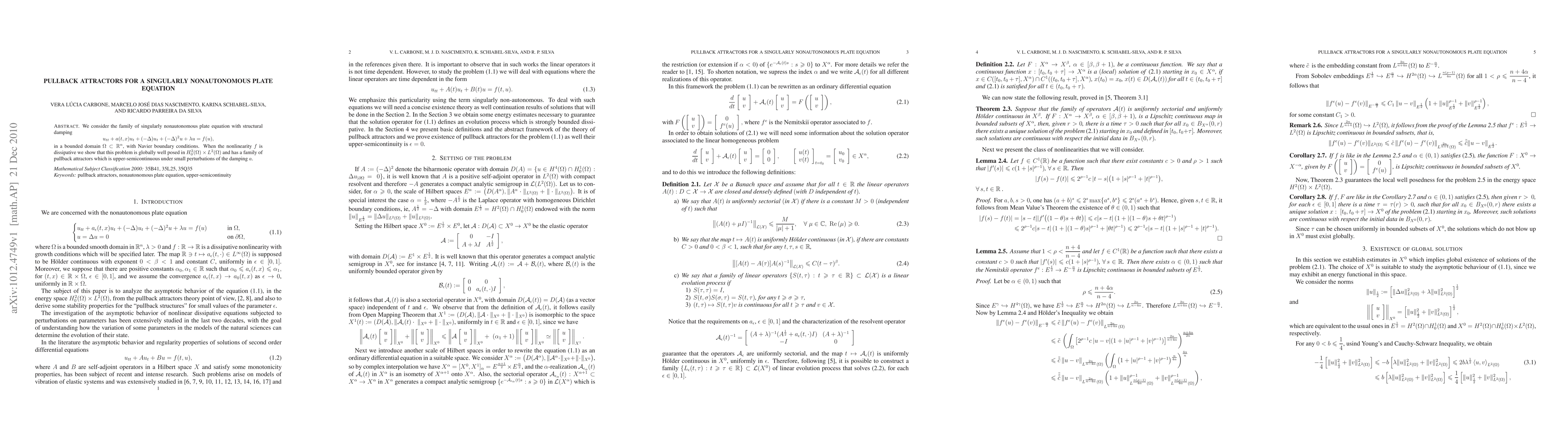 This paper investigates a singularly nonautonomous plate equation with structural damping and dissipative nonlinearity, proving global well-posedness and the existence of a family of pullback attractors that remain stable under minor damping perturbations. The study focuses on the bounded domain $\Omega \subset \R^n$ with Navier boundary conditions.