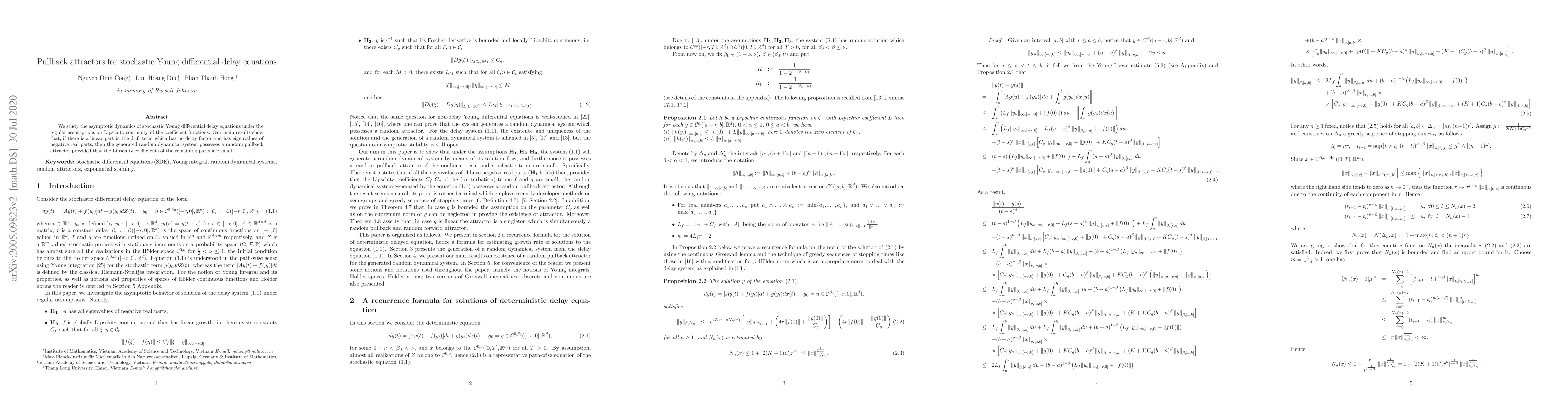 This research paper finds that under certain conditions, stochastic Young differential delay equations can have a random pullback attractor if the drift term has negative real parts without delays.