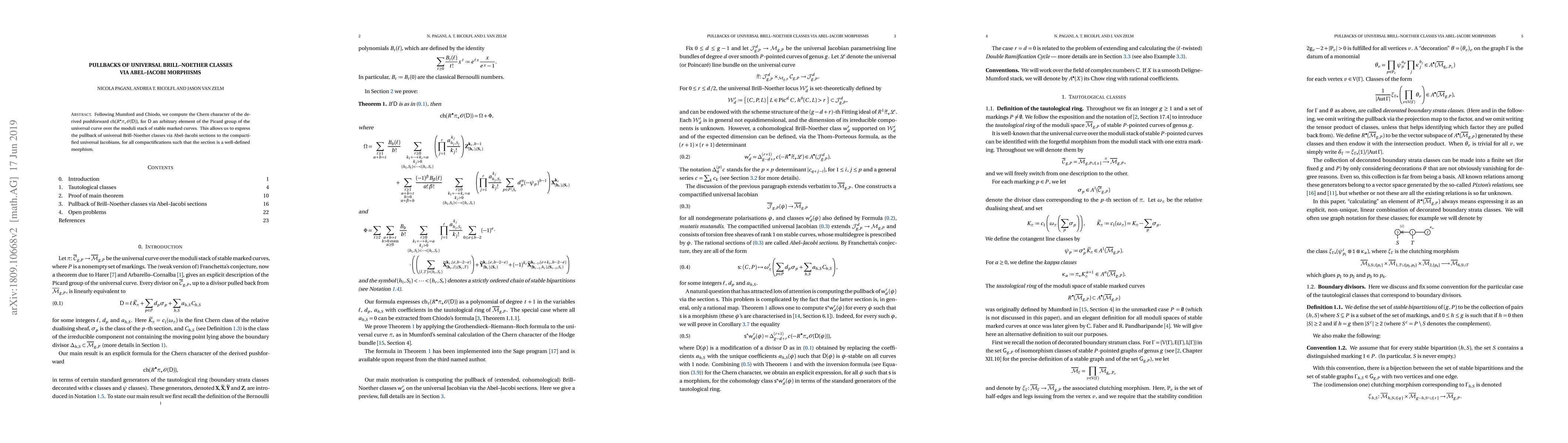 This paper computes the Chern character of the derived pushforward of the structure sheaf of an arbitrary divisor on the universal curve, and uses this to express the pullback of universal Brill-Noether classes via Abel-Jacobi morphisms to compactified universal Jacobians.
