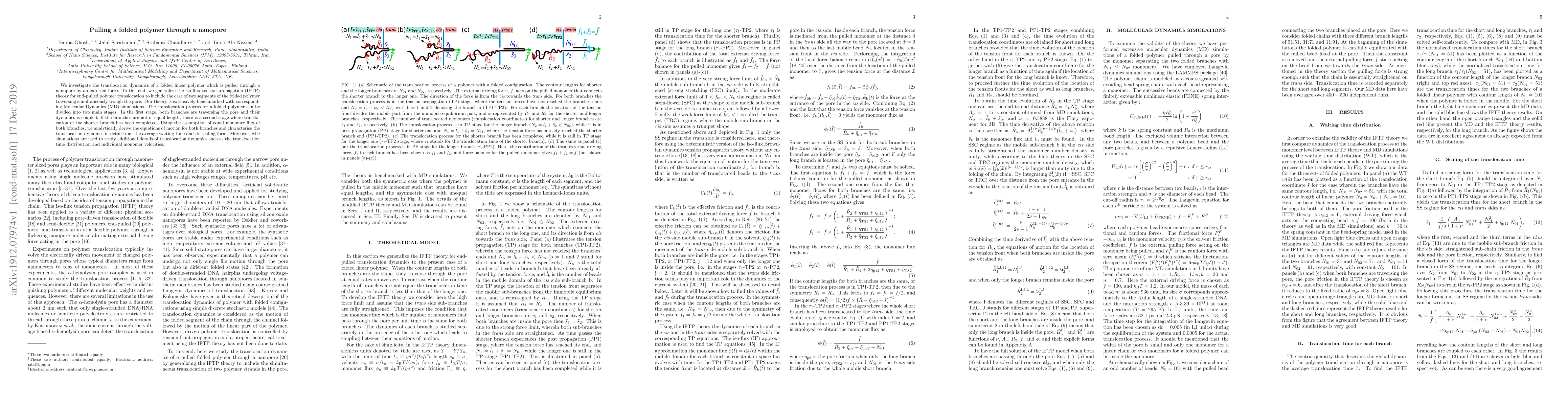 This paper develops a theoretical framework to analyze the dynamics of a folded polymer being pulled through a nanopore, extending the IFTP theory to account for simultaneous translocation of two segments. The study combines analytical derivations and Molecular Dynamics simulations to characterize the process, identifying two main stages of translocation and providing insights into waiting times and monomer velocities.