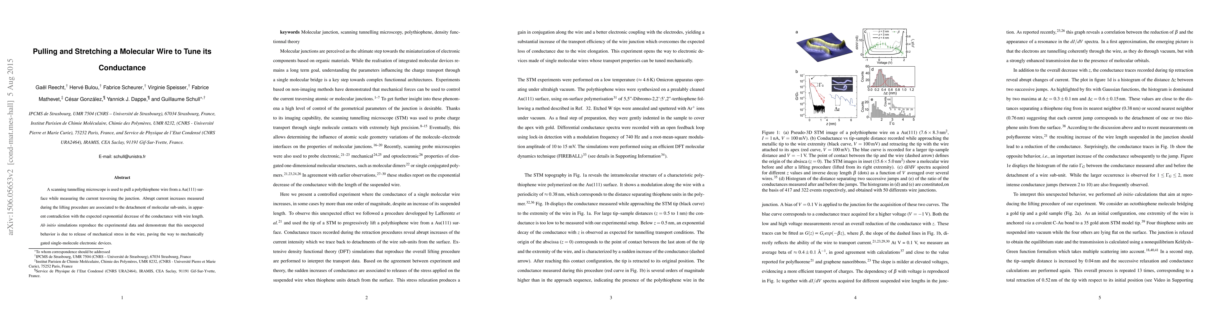 Researchers use a scanning tunnelling microscope to stretch a polythiophene wire, observing unexpected conductance increases during detachment of molecular sub-units, contrary to expected exponential decay. \textit{Ab initio} simulations explain this behavior as stress release, suggesting potential for mechanically gated single-molecule devices.