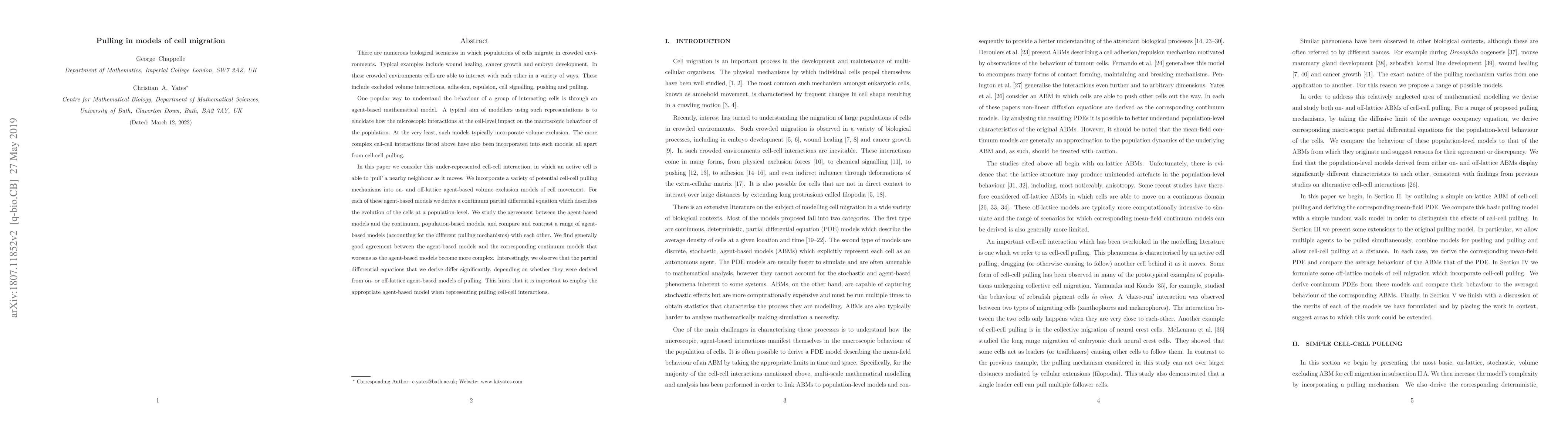 Researchers developed agent-based models to study cell migration in crowded environments, incorporating a previously under-represented 'pulling' interaction between cells, and found that continuum partial differential equations derived from the models showed significant agreement with the ABMs for simple pulling mechanisms but worsened as complexity increased.