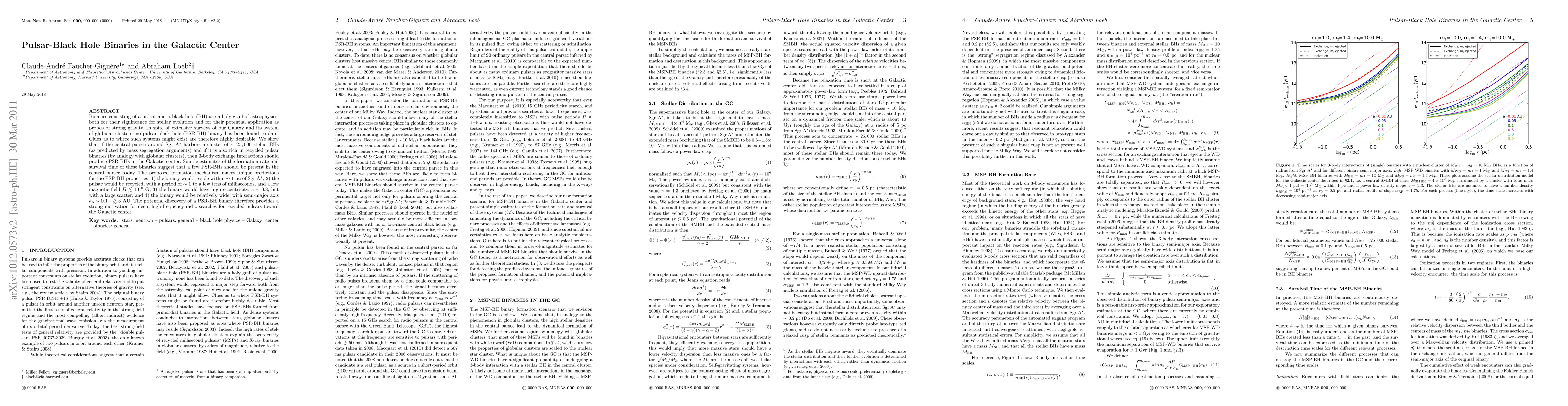 Binaries consisting of a pulsar and a black hole (BH) are a holy grail of astrophysics, both for their significance for stellar evolution and for their potential application as probes of strong gravity. In spite of extensive surveys of our Galaxy and its system of globular clusters, no pulsar-black hole (PSR-BH) binary has been found to date. Clues as to where such systems might exist are therefore highly desirable. We show that if the central parsec around Sgr A* harbors a cluster of ~25,000 stellar BHs (as predicted by mass segregation arguments) and if it is also rich in recycled pulsar binaries (by analogy with globular clusters), then 3-body exchange interactions should produce PSR-BHs in the Galactic center. Simple estimates of the formation rate and survival time of these binaries suggest that a few PSR-BHs should be present in the central parsec today. The proposed formation mechanism makes unique predictions for the PSR-BH properties: 1) the binary would reside within ~1 pc of Sgr A*; 2) the pulsar would be recycled, with a period of ~1 to a few tens of milliseconds, and a low magnetic field B<~10^10 G; 3) the binary would have high eccentricity, e~0.8, but with a large scatter; and 4) the binary would be relatively wide, with semi-major axis a_b~0.1 - >~3 AU. The potential discovery of a PSR-BH binary therefore provides a strong motivation for deep, high-frequency radio searches for recycled pulsars toward the Galactic center.