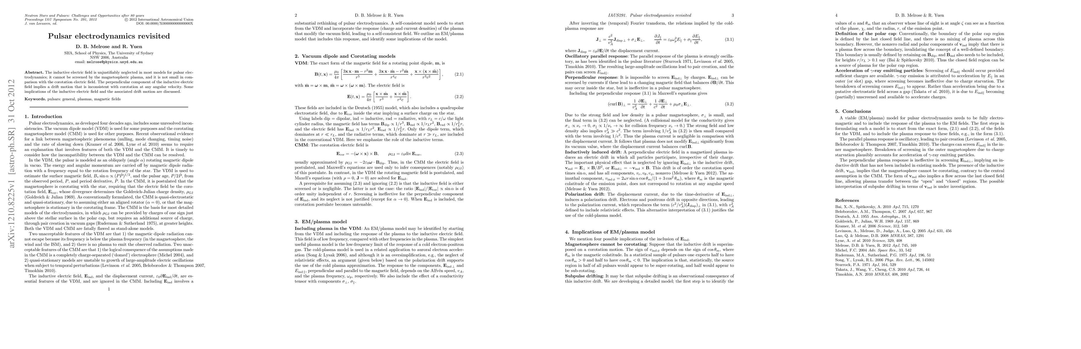 The inductive electric field is unjustifiably neglected in most models for pulsar electrodynamics; it cannot be screened by the magnetospheric plasma, and it is not small in comparison with the corotation electric field. The perpendicular component of the inductive electric field implies a drift motion that is inconsistent with corotation at any angular velocity. Some implications of the inductive electric field and the associated drift motion are discussed.