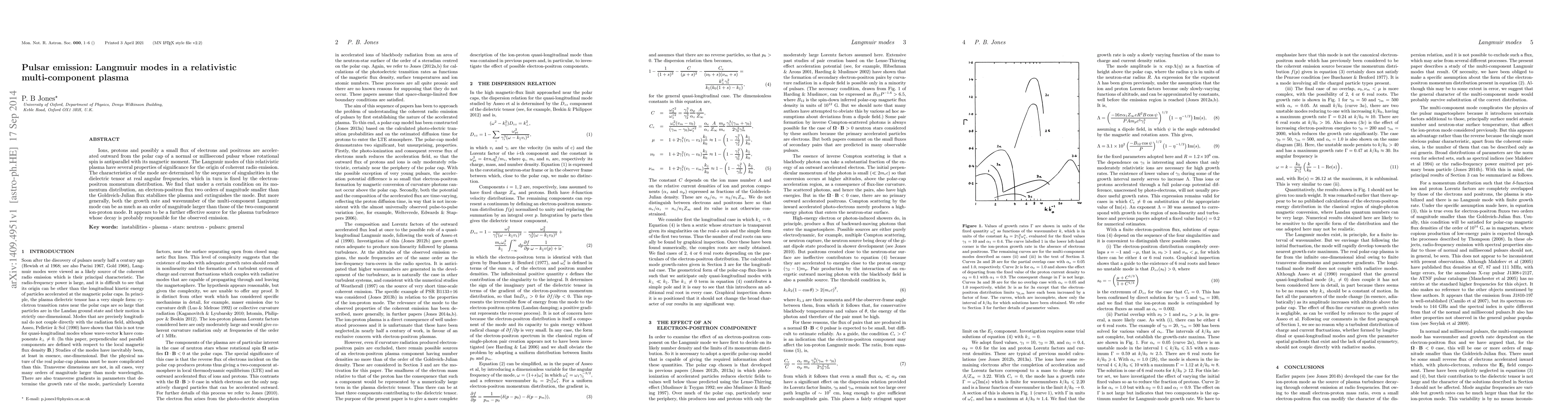 This paper explores Langmuir modes in relativistic multi-component plasmas around pulsars, finding that the inclusion of electrons and positrons can significantly enhance the mode's growth rate and wavenumber compared to ion-proton modes. It also reveals conditions under which a small electron-positron flux can stabilize the plasma and suppress the mode.
