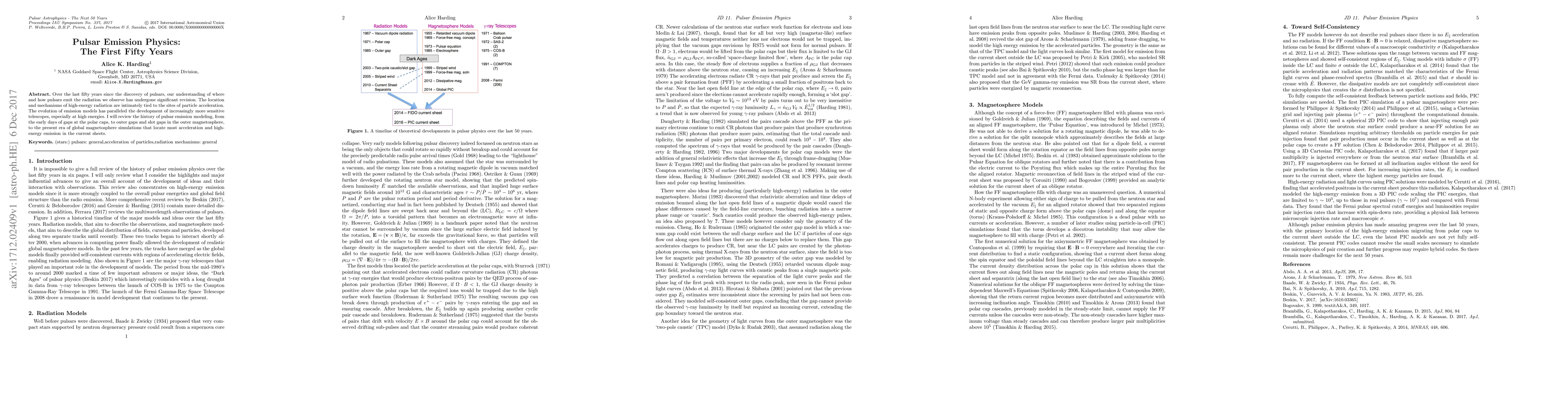 This paper reviews the evolution of pulsar emission models over the past fifty years, tracing the shift from early polar cap gap theories to contemporary global magnetosphere simulations that emphasize current sheets for particle acceleration and high-energy radiation.
