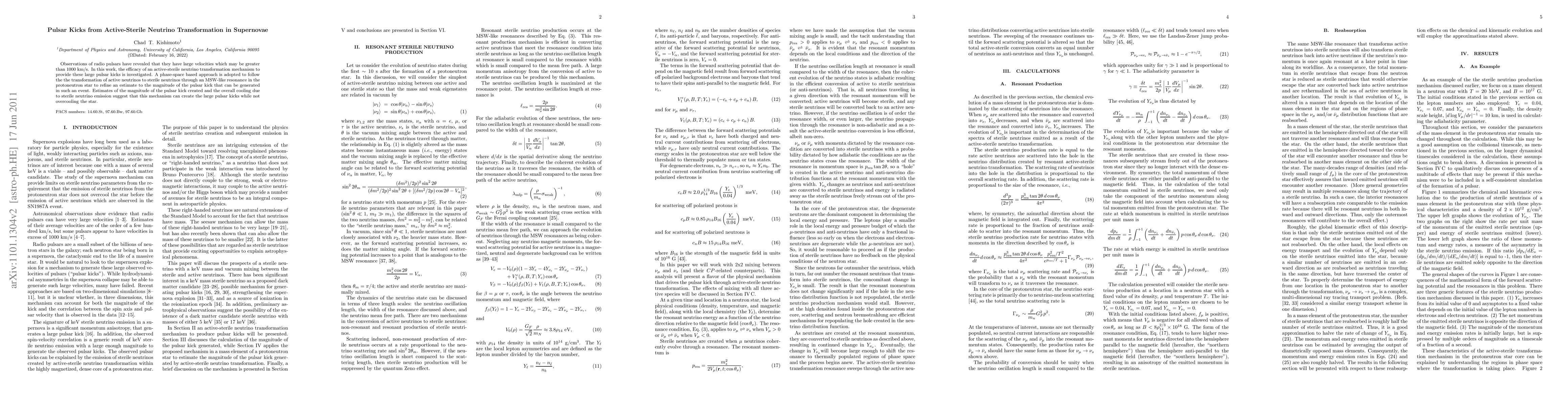 This paper investigates whether active-sterile neutrino transformations during supernovae can generate the large velocities observed in pulsars, finding that this mechanism can produce the necessary kicks without overcooling the star. A phase-space approach is used to model the transformation process through an MSW-like resonance in the protoneutron star.