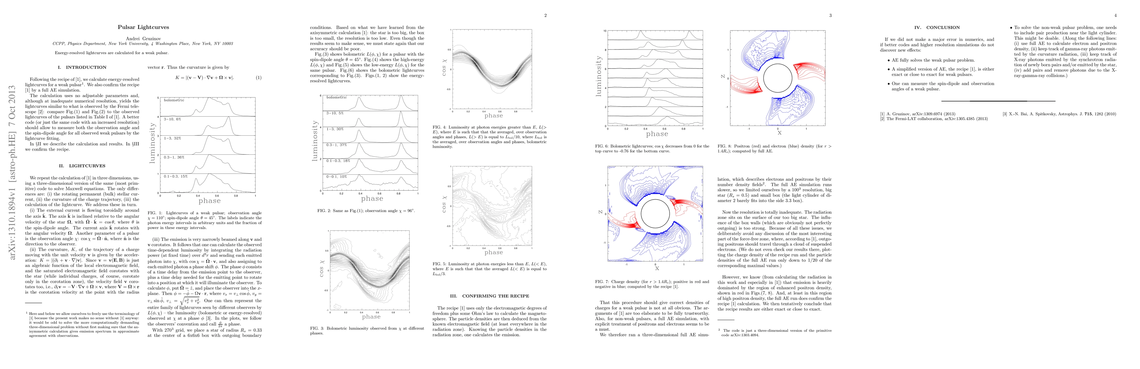 Energy-resolved lightcurves are calculated for a weak pulsar.