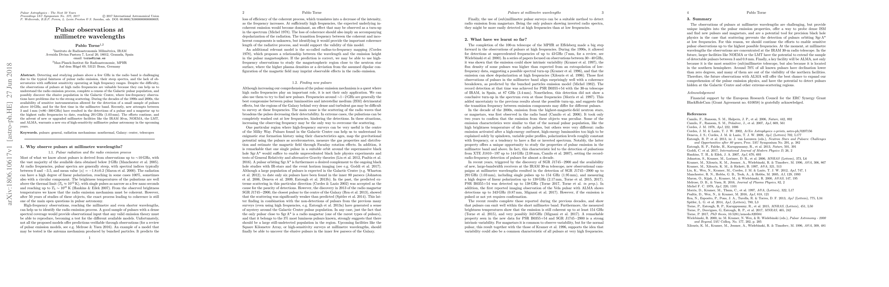 This paper discusses the challenges and advancements in observing pulsars at millimetre wavelengths, revealing the detection of pulsars and a magnetar at frequencies up to 291 GHz. The development of new millimetre facilities promises to enhance high-sensitivity pulsar astronomy in the future.
