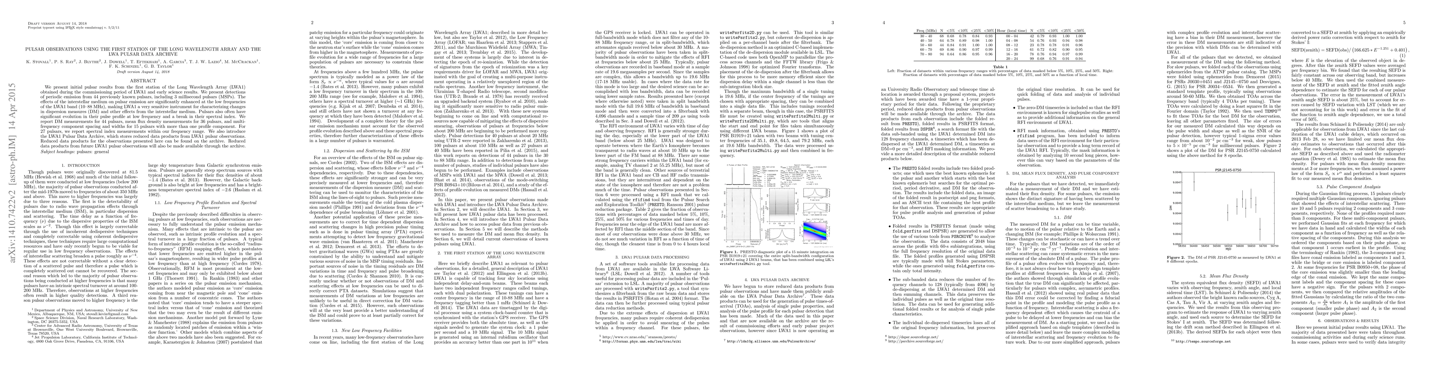 This paper reports initial pulsar observations from the first station of the Long Wavelength Array (LWA1), detecting periodic emissions from 44 known pulsars, including 3 millisecond pulsars. The study highlights LWA1's sensitivity to interstellar medium effects and provides detailed measurements of dispersion measures, flux densities, and spectral indices for multiple pulsars.