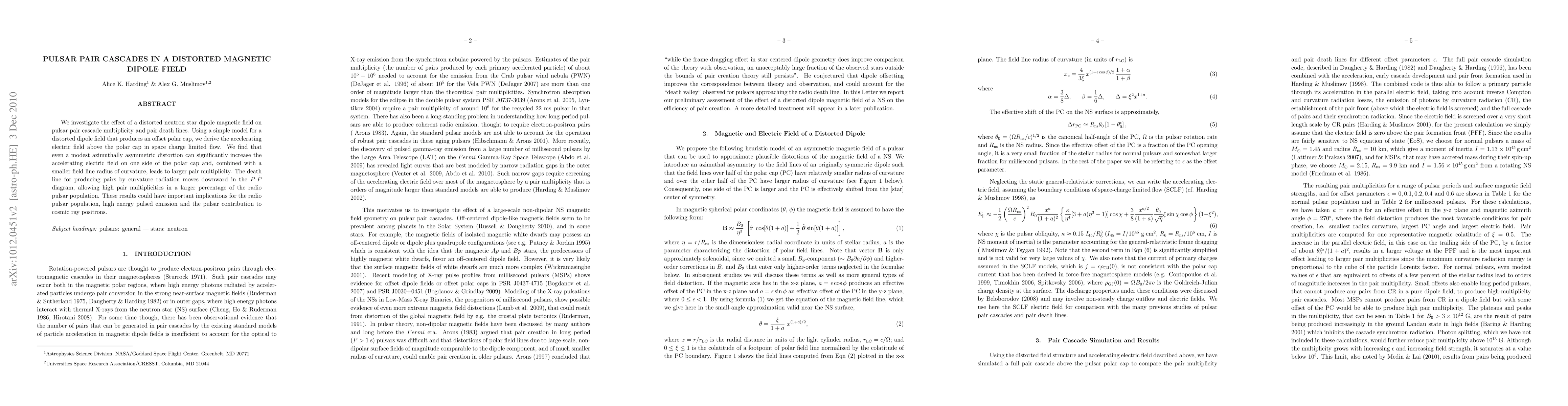 We investigate the effect of a distorted neutron star dipole magnetic field on pulsar pair cascade multiplicity and pair death lines. Using a simple model for a distorted dipole field that produces an offset polar cap, we derive the accelerating electric field above the polar cap in space charge limited flow. We find that even a modest azimuthally asymmetric distortion can significantly increase the accelerating electric field on one side of the polar cap and, combined with a smaller field line radius of curvature, leads to larger pair multiplicity. The death line for producing pairs by curvature radiation moves downward in the P-Pdot diagram, allowing high pair multiplicities in a larger percentage of the radio pulsar population. These results could have important implications for the radio pulsar population, high energy pulsed emission and the pulsar contribution to cosmic ray positrons.