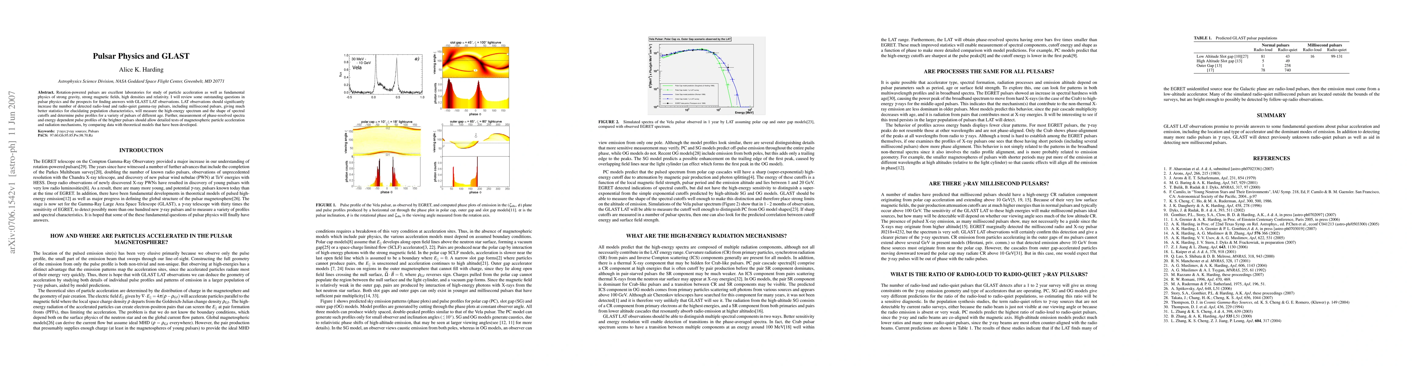 Rotation-powered pulsars are excellent laboratories for study of particle acceleration as well as fundamental physics of strong gravity, strong magnetic fields, high densities and relativity. I will review the outstanding questions in pulsar physics and the prospects for finding answers with GLAST LAT observations. LAT observations should significantly increase the number of detected radio-loud and radio-quiet gamma-ray pulsars, including millisecond pulsars, giving much better statistics for elucidating population characteristics, will measure the high-energy spectrum and the shape of spectral cutoffs and determine pulse profiles for a variety of pulsars of different age. Further, measurement of phase-resolved spectra and energy dependent pulse profiles of the brighter pulsars should allow detailed tests of magnetospheric particle acceleration and radiation mechanisms, by comparing data with theoretical models that have been developed.