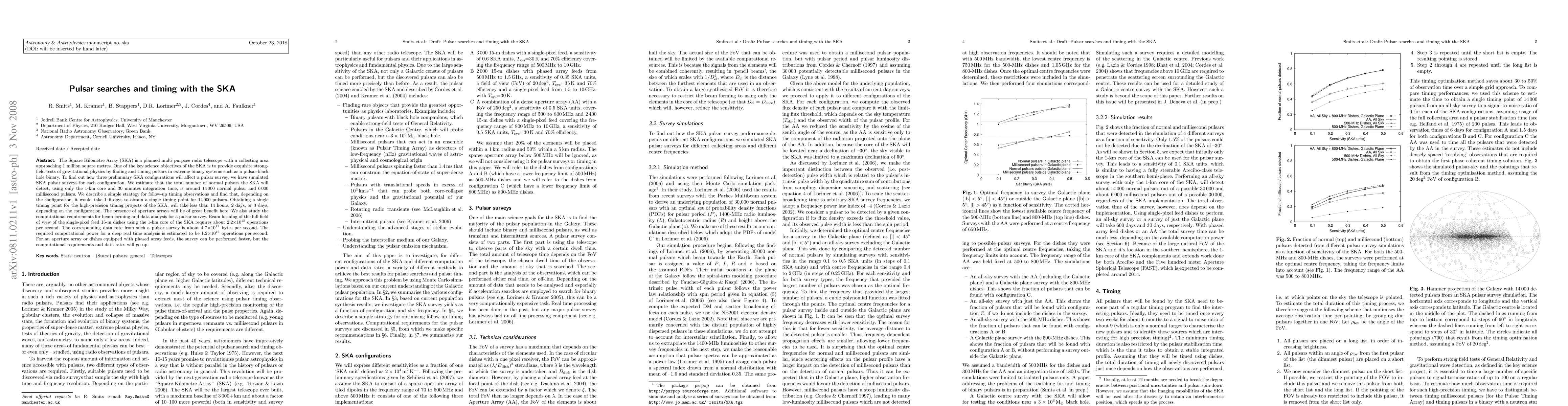 The SKA, a large radio telescope, is expected to detect around 14,000 normal pulsars and 6,000 millisecond pulsars. The computational demands and data rates for pulsar surveys are immense, requiring significant processing power for beam forming and data analysis.