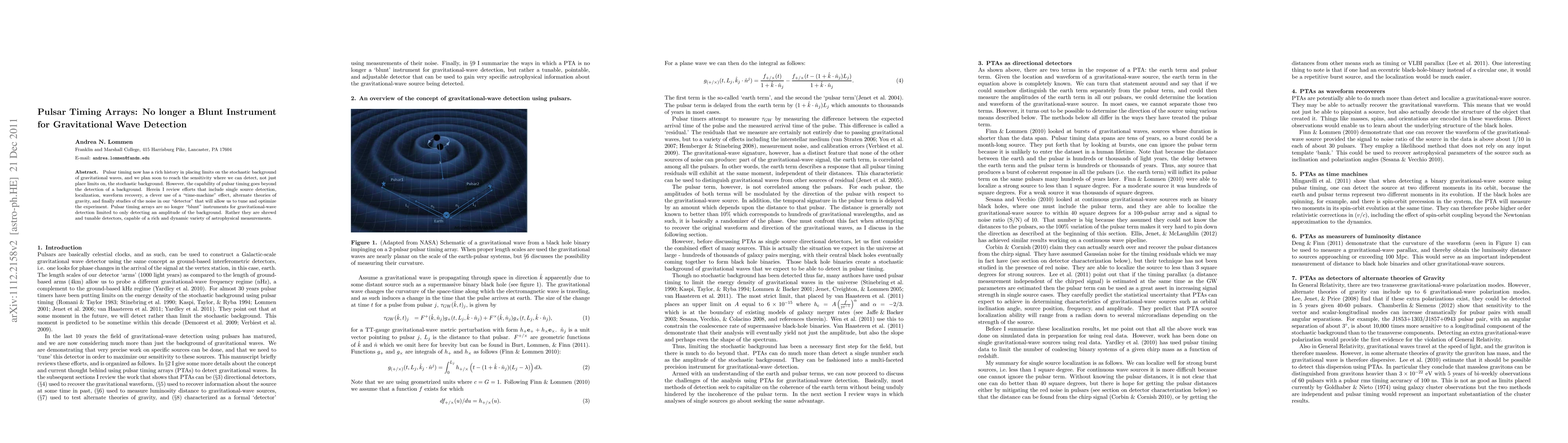 Pulsar timing now has a rich history in placing limits on the stochastic background of gravitational waves, and we plan soon to reach the sensitivity where we can detect, not just place limits on, the stochastic background. However, the capability of pulsar timing goes beyond the detection of a background. Herein I review efforts that include single source detection, localization, waveform recovery, a clever use of a "time-machine" effect, alternate theories of gravity, and finally studies of the noise in our "detector" that will allow us to tune and optimize the experiment. Pulsar timing arrays are no longer "blunt" instruments for gravitational-wave detection limited to only detecting an amplitude of the background. Rather they are shrewd and tunable detectors, capable of a rich and dynamic variety of astrophysical measurements.
