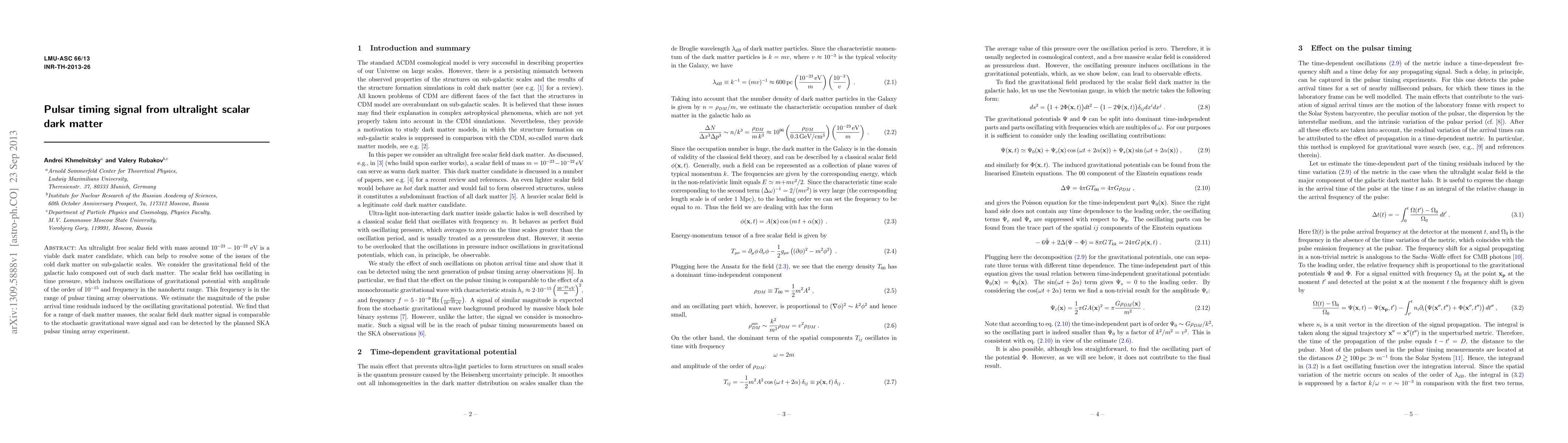 This paper explores the potential detection of ultralight scalar dark matter through pulsar timing arrays, finding that its gravitational field induces oscillations detectable in the nanohertz range, comparable to stochastic gravitational wave signals, and feasible for the upcoming SKA experiment.