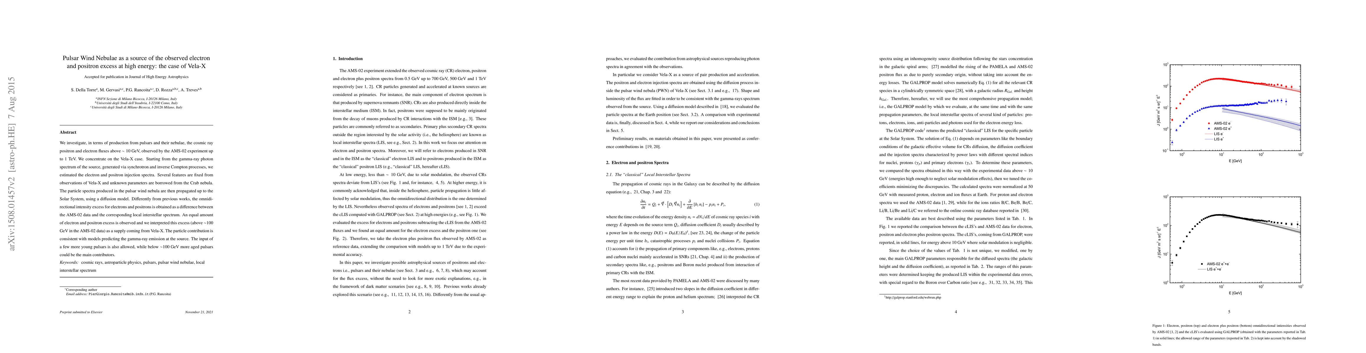 This paper investigates the contribution of the Vela-X pulsar wind nebula to the high-energy cosmic ray positron and electron excess observed by AMS-02, proposing that the excess above 100 GeV is primarily sourced from Vela-X, while older pulsars may contribute at lower energies. The study uses a diffusion model to propagate particle spectra from the nebula to the Solar System.