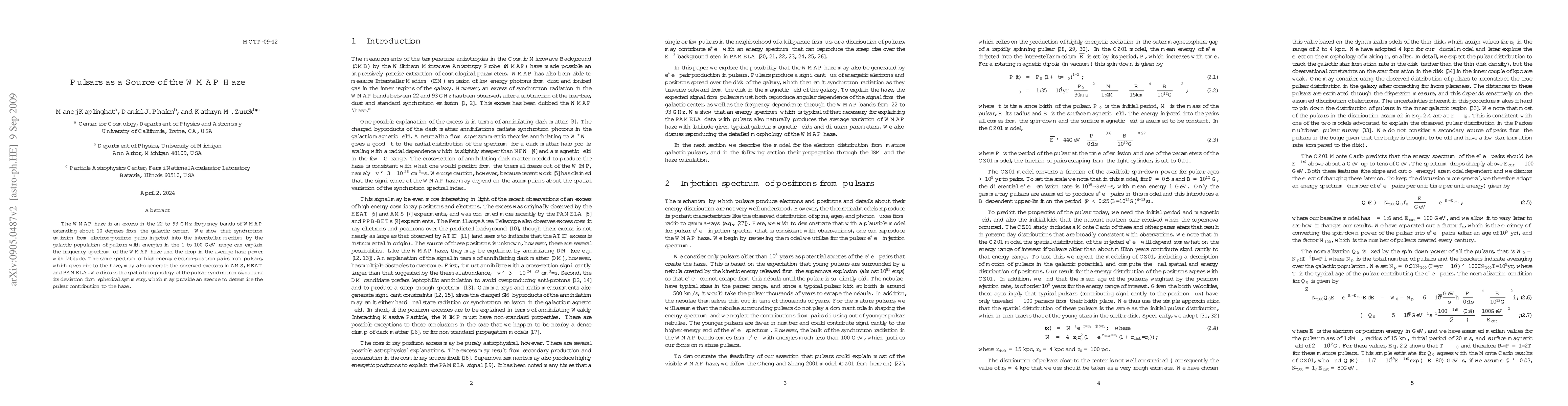 This paper proposes that pulsars are the source of the WMAP haze, attributing the excess observed in the 22 to 93 GHz frequency bands to synchrotron emission from electron-positron pairs injected by pulsars. It suggests the spatial morphology of this signal may reveal the pulsar contribution.
