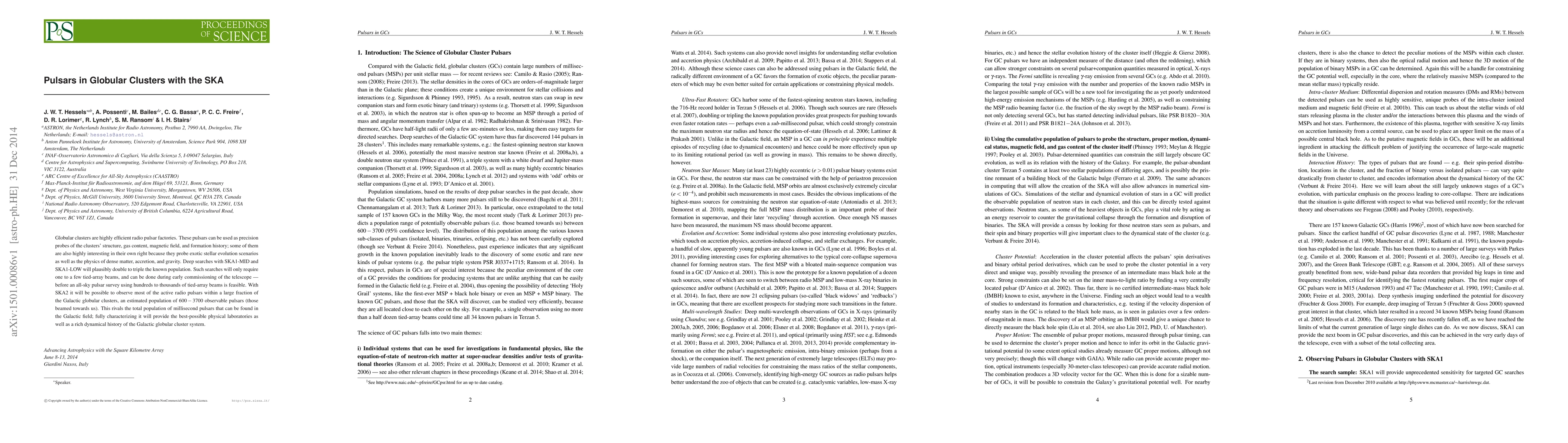 The SKA telescope will double to triple the known population of pulsars in globular clusters, providing a wealth of information on these star systems' structure, gas content, magnetic field, and formation history.