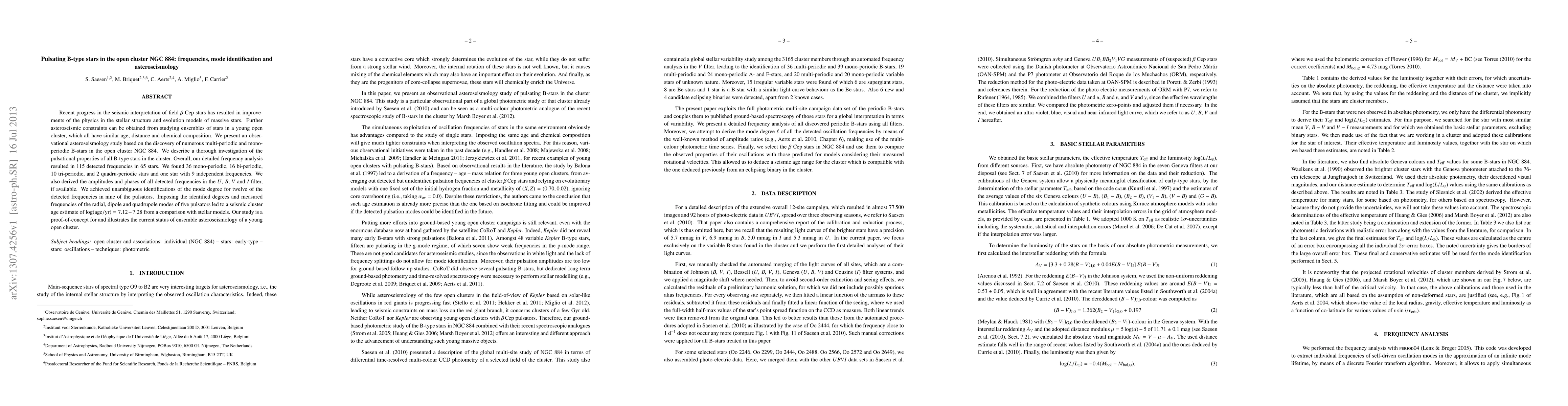 This paper presents an observational asteroseismology study of pulsating B-type stars in the open cluster NGC 884, identifying 115 frequencies in 65 stars and deriving mode degrees for twelve frequencies. The study provides a seismic cluster age estimate and demonstrates the potential of ensemble asteroseismology for young open clusters.