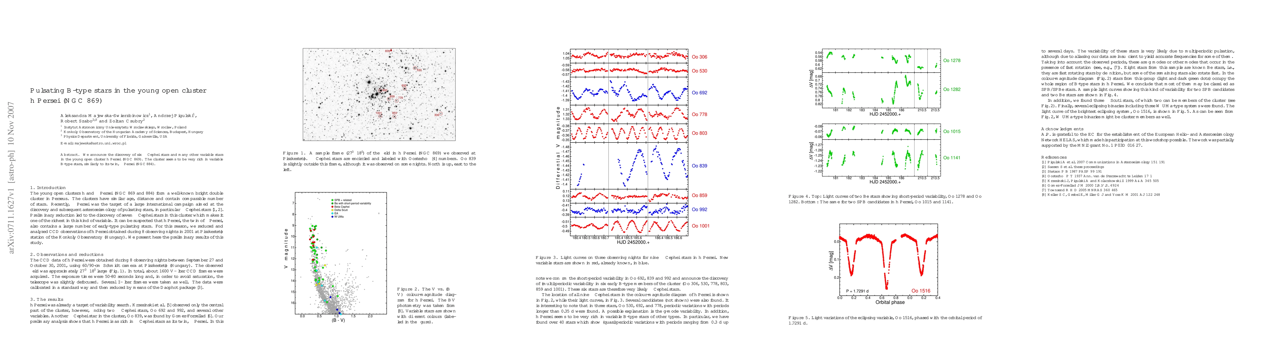 Summary: The research identifies six Beta Cephei stars and numerous other variable B-type stars in the young open cluster h Persei (NGC 869), highlighting its richness in variable stars akin to its counterpart, Chi Persei (NGC 884).