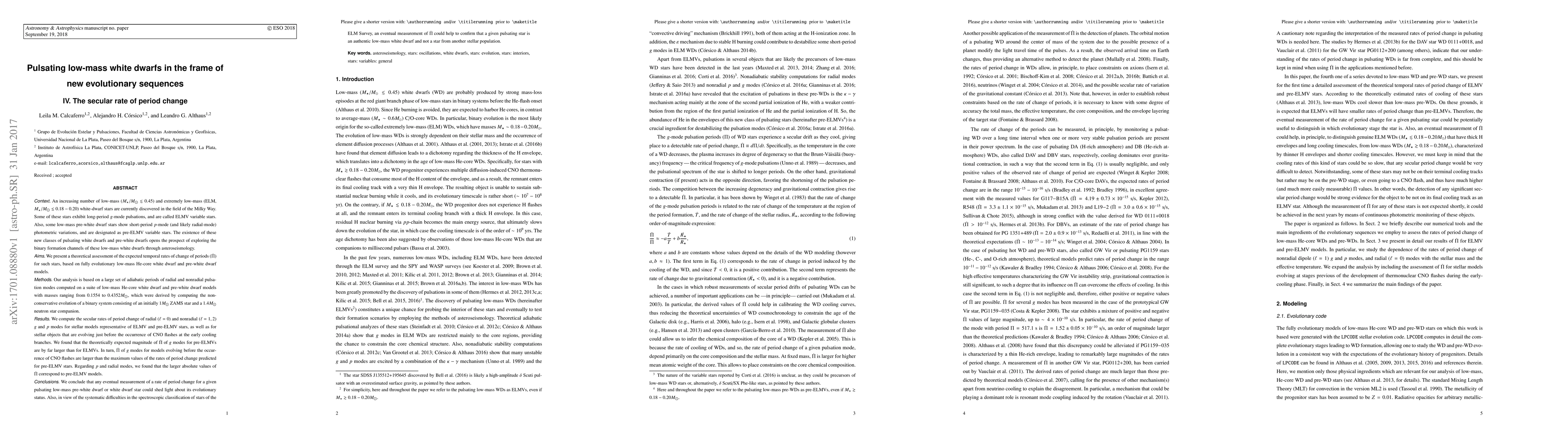 This paper theoretically assesses the secular rates of period change for low-mass and extremely low-mass white dwarfs, finding that the rates for g modes in pre-extremely low-mass white dwarfs are significantly larger than those for ELMVs. Such measurements could reveal the evolutionary status of these stars and aid in their classification.
