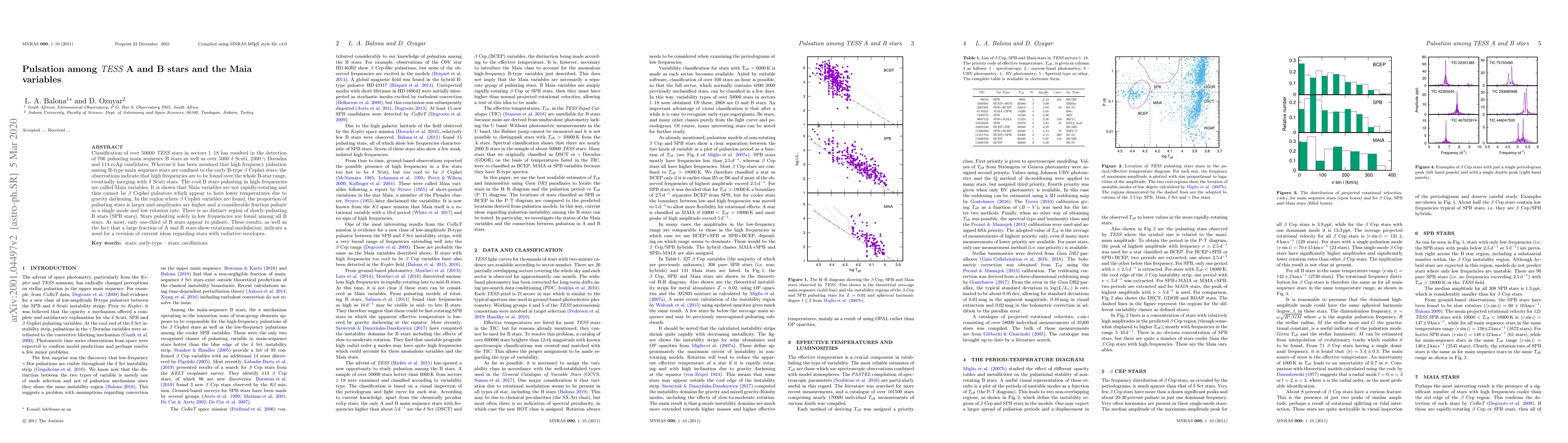 This paper classifies over 50,000 TESS stars, identifying 766 pulsating B stars and categorizing them into $\delta$ Scuti, $\gamma$ Doradus, and roAp types. It reveals that high-frequency pulsations previously attributed to $\beta$ Cephei stars are actually part of a continuum among B stars, with Maia variables representing cool B stars pulsating in high frequencies.