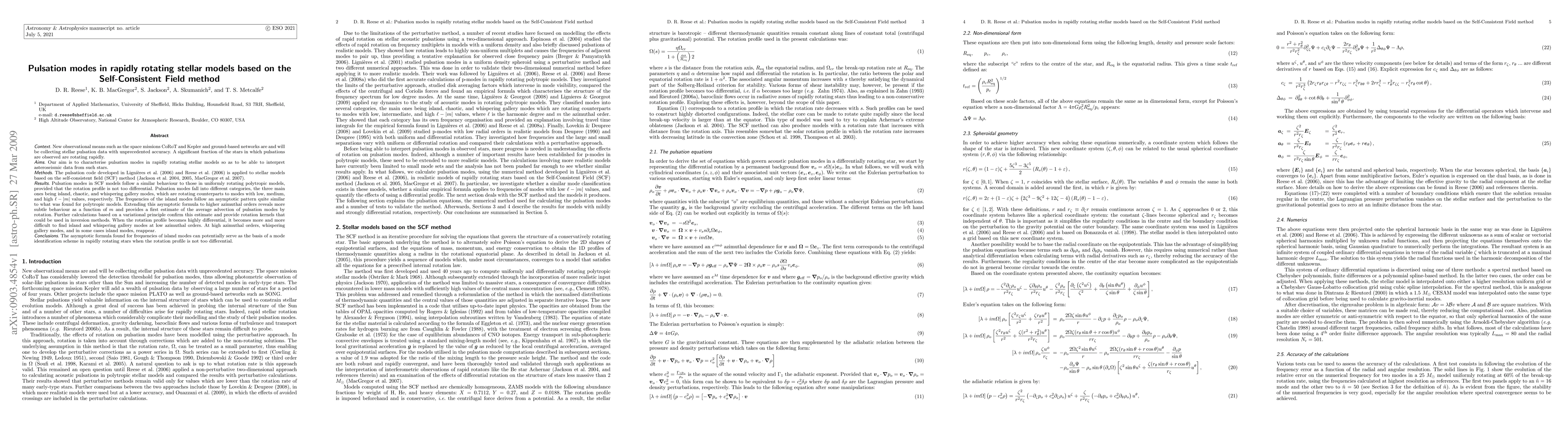 This paper characterizes pulsation modes in rapidly rotating stellar models using the self-consistent field method, revealing three main categories: island, chaotic, and whispering gallery modes. The study provides insights into the behavior of these modes under differential rotation and offers rotation kernels useful for interpreting asteroseismic data.