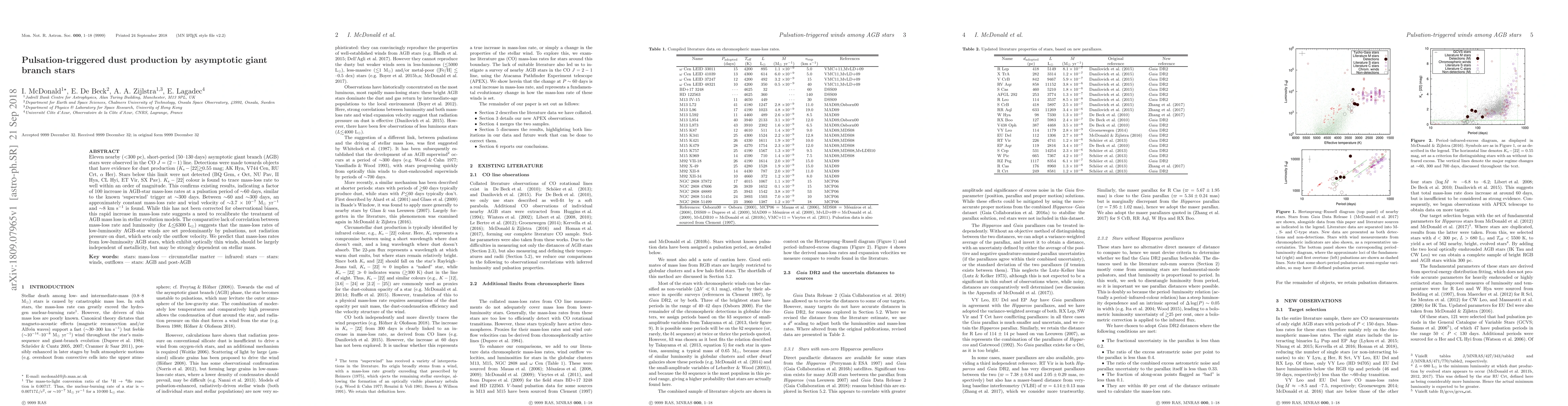 Research finds that pulsation-triggered dust production occurs in nearby asymptotic giant branch stars, with a significant increase in mass-loss rates at short pulsation periods, similar to the known 'superwind' phenomenon.