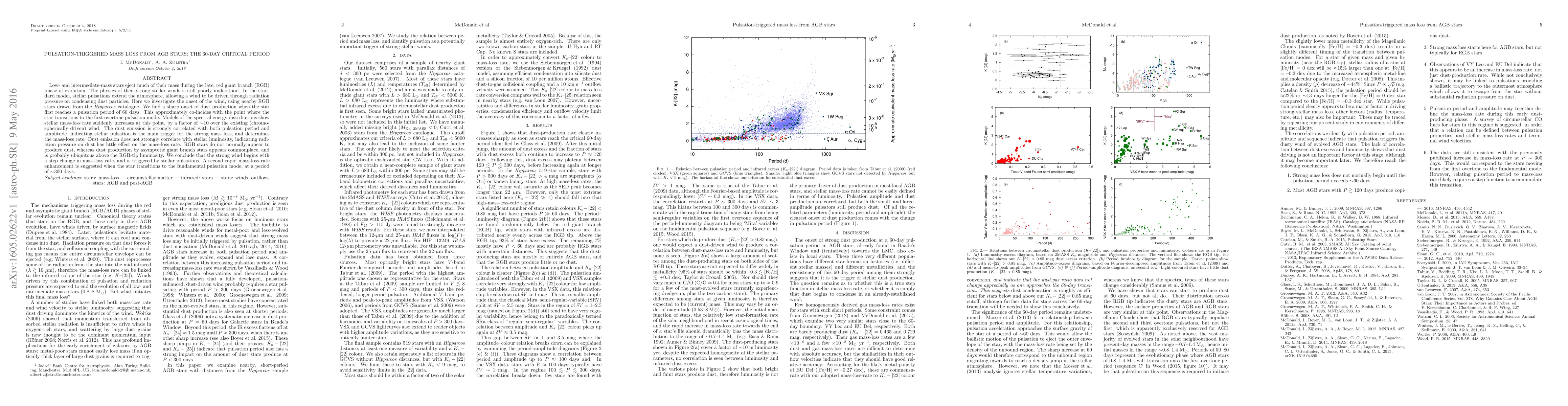 Low- and intermediate-mass stars eject much of their mass during the late, red giant branch (RGB) phase of evolution. The physics of their strong stellar winds is still poorly understood. In the standard model, stellar pulsations extend the atmosphere, allowing a wind to be driven through radiation pressure on condensing dust particles. Here we investigate the onset of the wind, using nearby RGB stars drawn from the Hipparcos catalogue. We find a sharp onset of dust production when the star first reaches a pulsation period of 60 days. This approximately co-incides with the point where the star transitions to the first overtone pulsation mode. Models of the spectral energy distributions show stellar mass-loss rate suddenly increases at this point, by a factor of ~10 over the existing (chromospherically driven) wind. The dust emission is strongly correlated with both pulsation period and amplitude, indicating stellar pulsation is the main trigger for the strong mass loss, and determines the mass-loss rate. Dust emission does not strongly correlate with stellar luminosity, indicating radiation pressure on dust has little effect on the mass-loss rate. RGB stars do not normally appear to produce dust, whereas dust production by asymptotic giant branch stars appears commonplace, and is probably ubiquitous above the RGB-tip luminosity. We conclude that the strong wind begins with a step change in mass-loss rate, and is triggered by stellar pulsations. A second rapid mass-loss-rate enhancement is suggested when the star transitions to the fundamental pulsation mode, at a period of ~300 days.