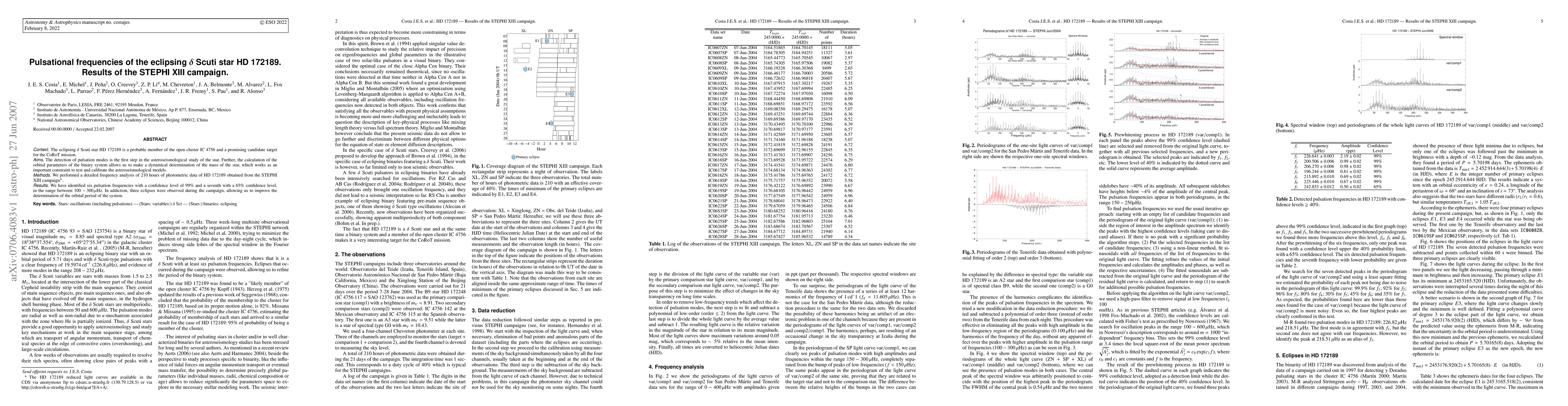 The eclipsing delta-Scuti star HD 172189 is a probable member of the open cluster IC 4756 and a promising candidate target for the CoRoT mission. The detection of pulsation modes is the first step in the asteroseismological study of the star. Further, the calculation of the orbital parameters of the binary system allows us to make a dynamical determination of the mass of the star, which works as an important constraint to test and calibrate the asteroseismological models. From a detailed frequency analysis of 210 hours of photometric data of HD 172189 obtained from the STEPHI XIII campaign we have identified six pulsation frequencies with a confidence level of 99% and a seventh with a 65% confidence level in the range between 100-300 uHz. In addiction, three eclipses were observed during the campaign, allowing us to improve the determination of the orbital period of the system.