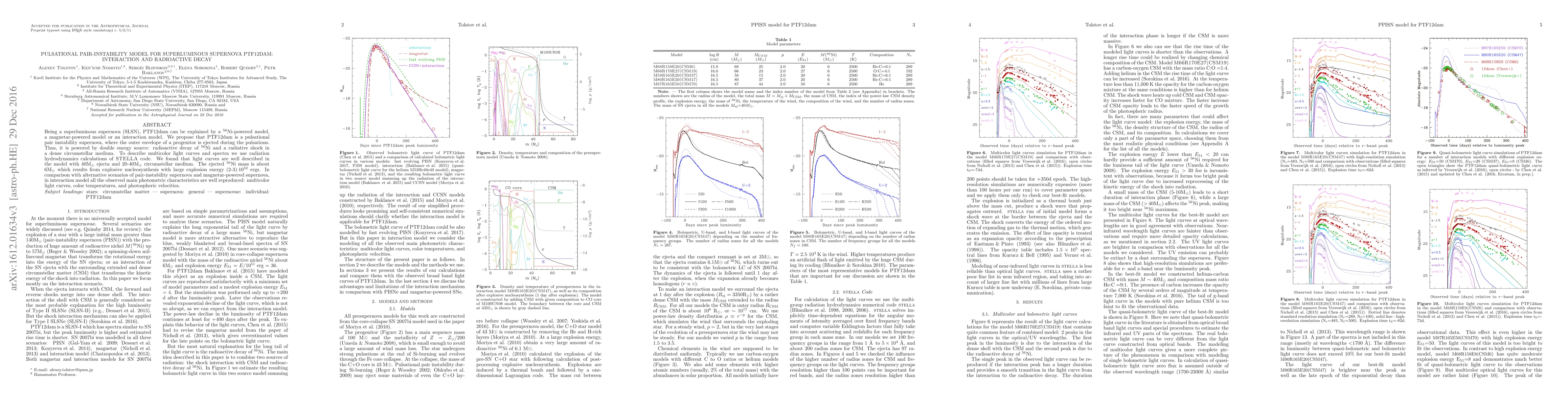 This paper proposes that superluminous supernova PTF12dam is a pulsational pair instability supernova, driven by both radioactive decay of $^{56}$Ni and interaction with a dense circumstellar medium. The model accurately reproduces observed light curves, spectra, and other characteristics.