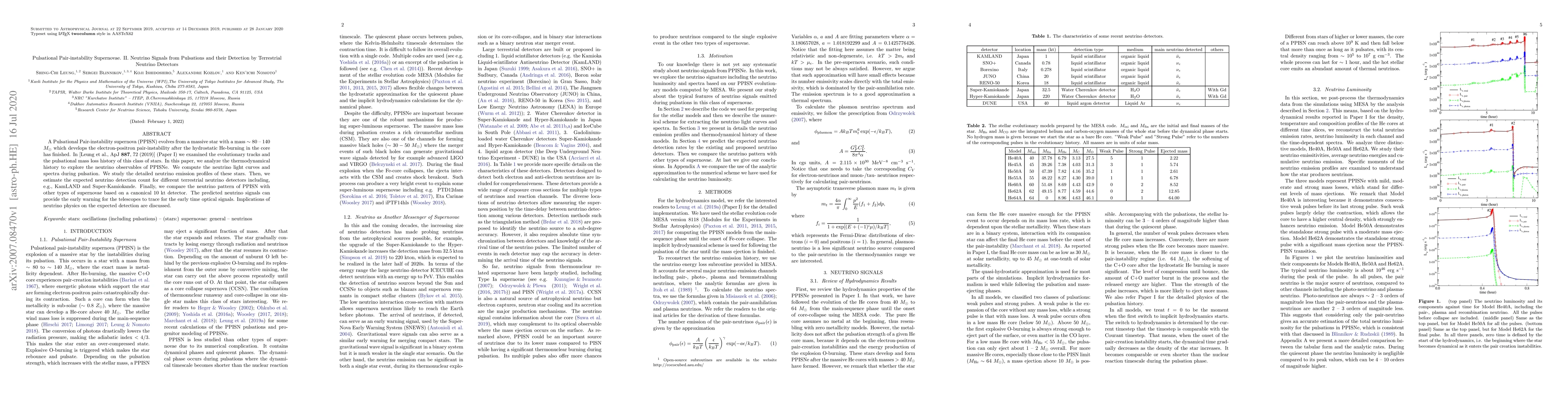 Researchers studied the neutrino signals from Pulsational Pair-instability supernovae (PPISNe) and estimated detection counts for terrestrial detectors like KamLAND and Super-Kamiokande, potentially providing an early warning system for optical signals.