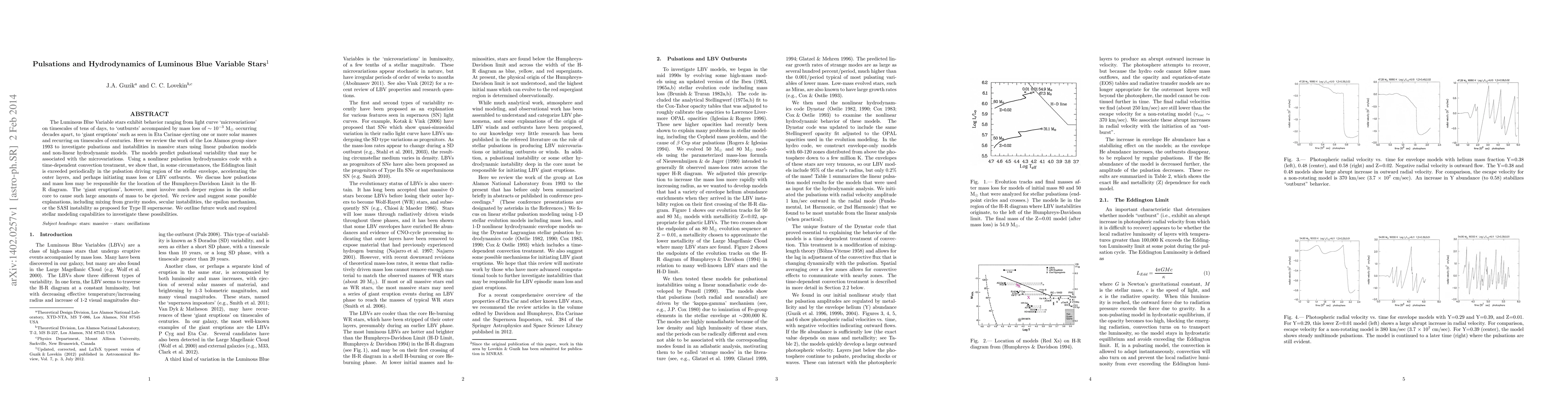 This paper reviews the Los Alamos group's research on Luminous Blue Variable stars, focusing on pulsations and hydrodynamics. It suggests that pulsations may drive microvariations and mass loss, while deeper core instabilities could be responsible for giant eruptions, proposing several mechanisms for future investigation.