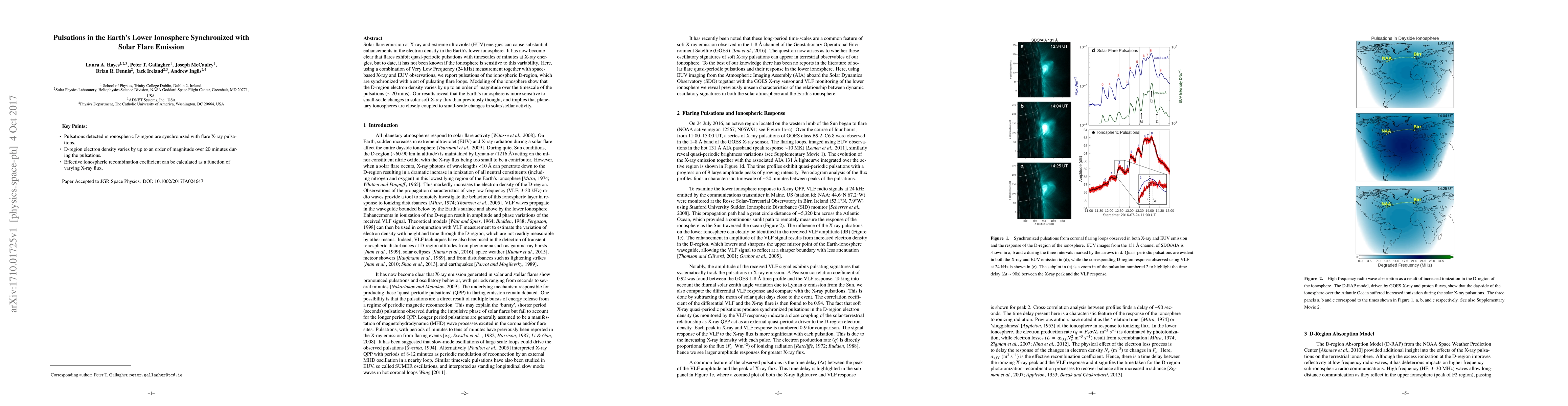 This paper reports that pulsations in the Earth's lower ionosphere, specifically the D-region, are synchronized with quasi-periodic pulsations in solar flare emissions. The study reveals significant electron density variations in the ionosphere, indicating a heightened sensitivity to small-scale solar activity changes.