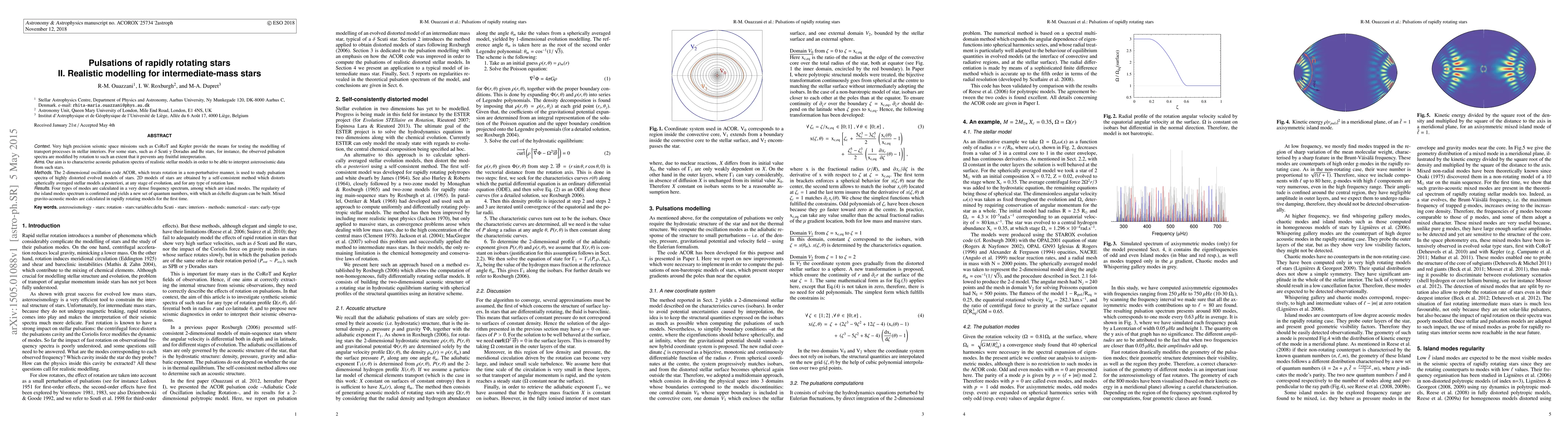 This paper uses the 2D oscillation code ACOR to model acoustic pulsations in realistic intermediate-mass stars, focusing on the effects of rotation on observed pulsation spectra. The study introduces a new set of quantum numbers for island modes and calculates mixed gravito-acoustic modes in rapidly rotating stars for the first time.