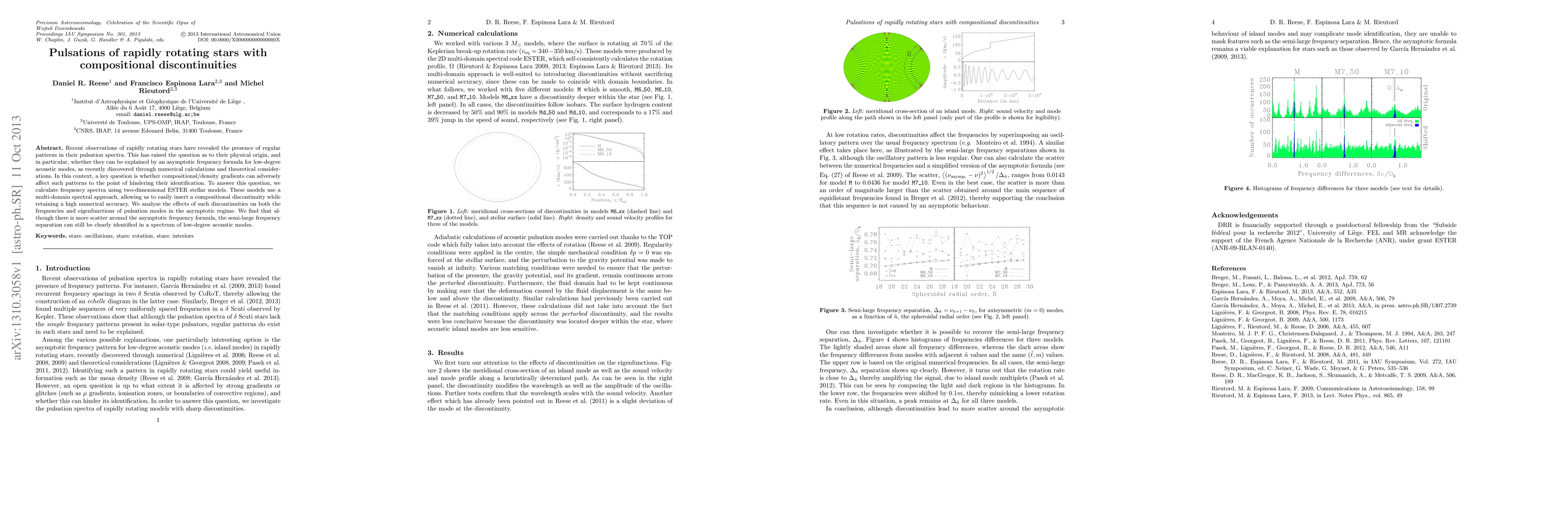 This paper investigates the impact of compositional discontinuities on the pulsation spectra of rapidly rotating stars, finding that while there is increased scatter, the semi-large frequency separation remains identifiable in low-degree acoustic modes, despite the presence of density gradients.