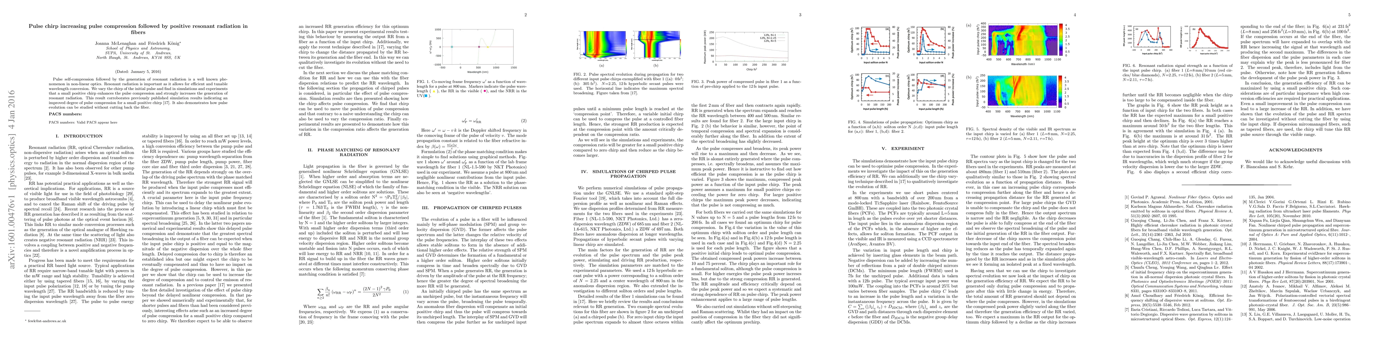 Pulse self-compression followed by the generation of resonant radiation is a well known phenomenon in non-linear optics. Resonant radiation is important as it allows for efficient and tunable wavelength conversion. We vary the chirp of the initial pulse and find in simulations and experiments that a small positive chirp enhances the pulse compression and strongly increases the generation of resonant radiation. This result corroborates previously published simulation results indicating an improved degree of pulse compression for a small positive chirp [1]. It also demonstrates how pulse evolution can be studied without cutting back the fiber.