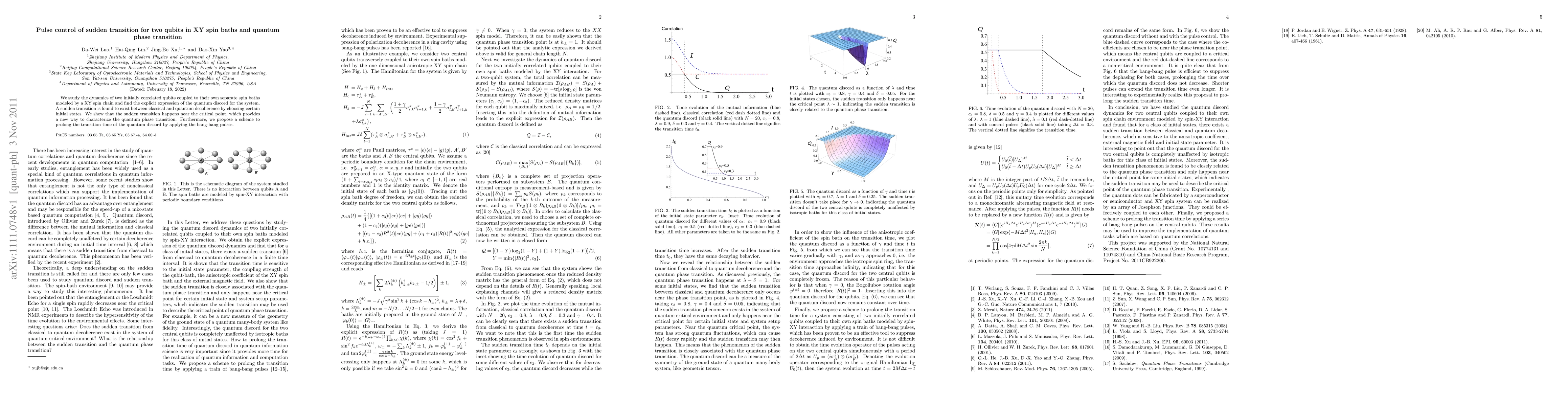 This paper investigates the dynamics of two correlated qubits in separate XY spin chain baths, revealing a sudden transition between classical and quantum decoherence near a critical point. The authors propose using bang-bang pulses to prolong the transition time of quantum discord, offering a novel method to characterize quantum phase transitions.