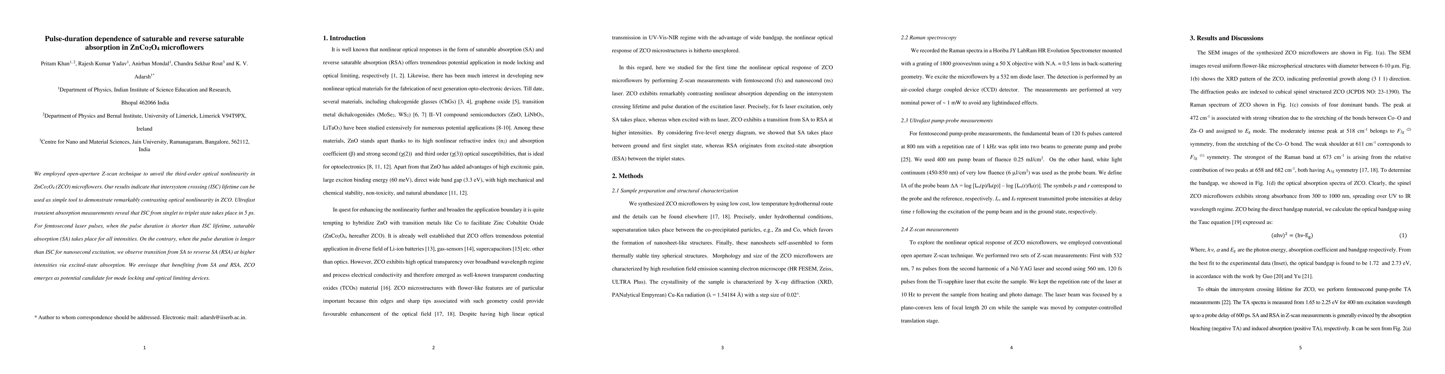 Researchers investigated ZnCo2O4 microflowers using Z-scan technique to study optical nonlinearity, discovering a transition from saturable absorption to reverse saturable absorption based on pulse duration.
