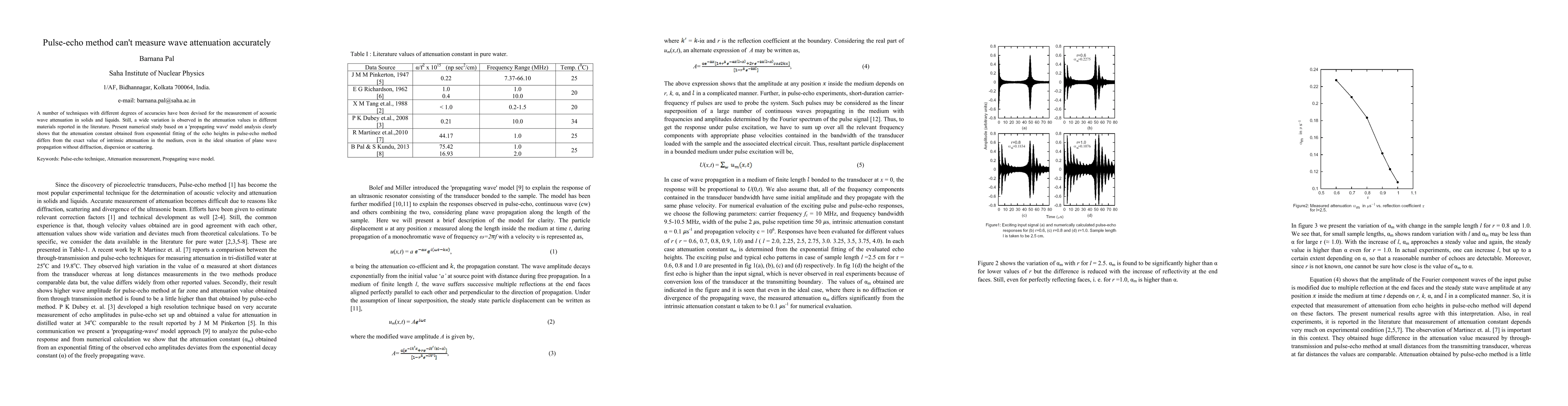 The pulse-echo method inaccurately measures acoustic wave attenuation due to discrepancies between fitted echo heights and intrinsic attenuation values, even in ideal plane wave conditions. This highlights the method's limitations in accurately determining attenuation constants.