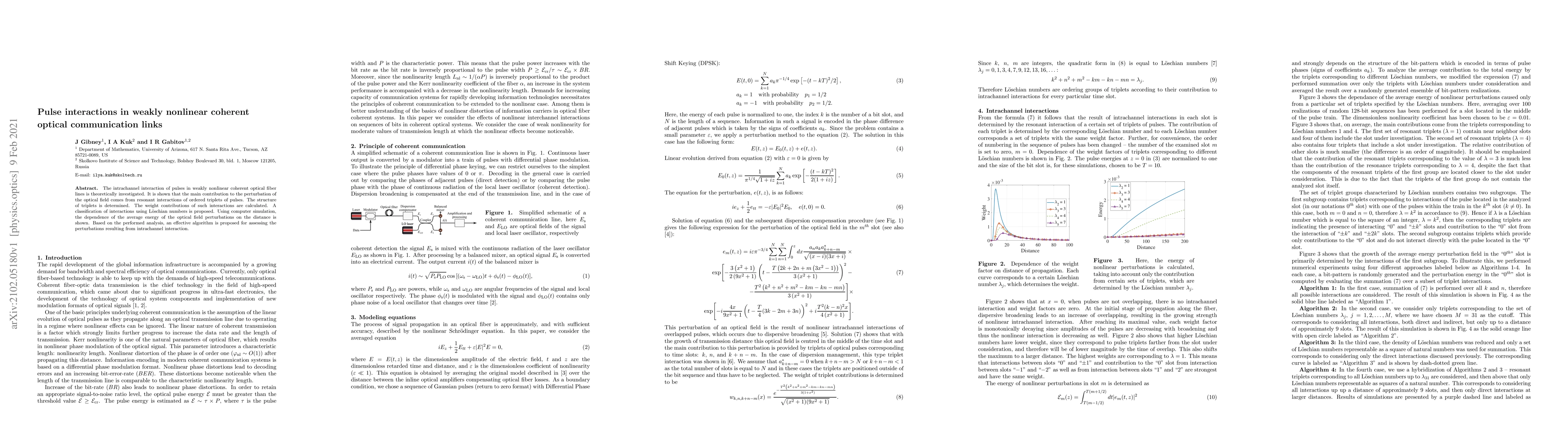 Researchers investigated how pulses interact in weakly nonlinear optical fibers, finding that resonant interactions between ordered triplets of pulses are the main contributor to field perturbations. They proposed a classification system and an algorithm to assess these perturbations.