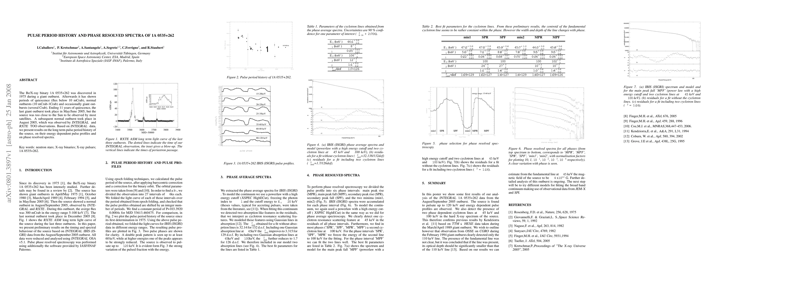 The Be/X-ray binary 1A 0535+262 has exhibited periods of quiescence, normal outbursts, and giant outbursts since its discovery in 1975. A recent study analyzed the source's long-term pulse period history and phase-resolved spectra using INTEGRAL data.