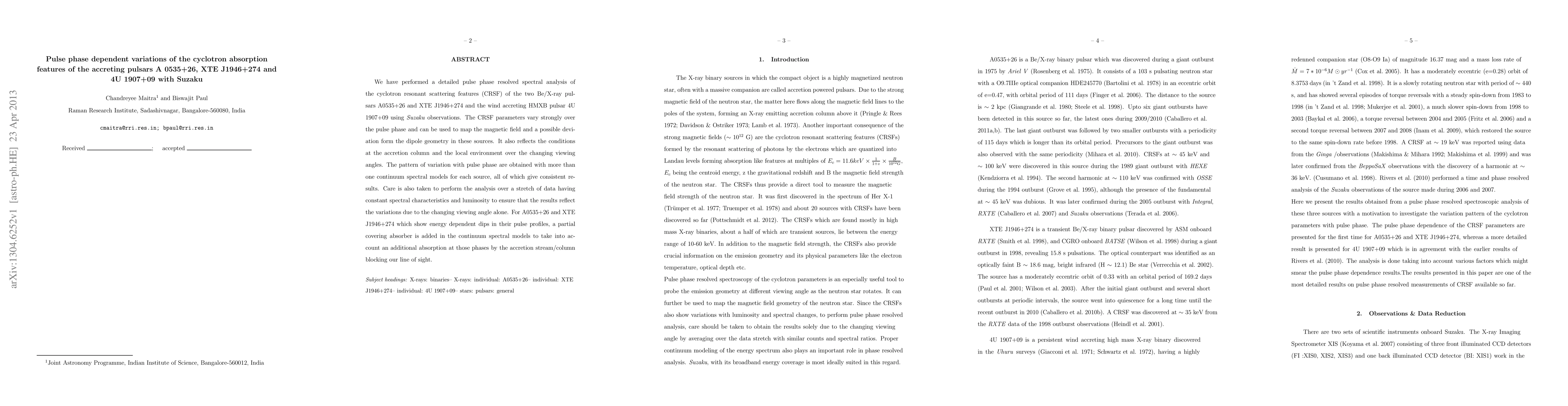 We have performed a detailed pulse phase resolved spectral analysis of the cyclotron resonant scattering features (CRSF) of the two Be/X-ray pulsars A0535+26 and XTE J1946+274 and the wind accreting HMXB pulsar 4U 1907+09 using Suzaku observations. The CRSF parameters vary strongly over the pulse phase and can be used to map the magnetic field and a possible deviation form the dipole geometry in these sources. It also reflects the conditions at the accretion column and the local environment over the changing viewing angles. The pattern of variation with pulse phase are obtained with more than one continuum spectral models for each source, all of which give consistent results. Care is also taken to perform the analysis over a stretch of data having constant spectral characteristics and luminosity to ensure that the results reflect the variations due to the changing viewing angle alone. For A0535+26 and XTE J1946+274 which show energy dependent dips in their pulse profiles, a partial covering absorber is added in the continuum spectral models to take into account an additional absorption at those phases by the accretion stream/column blocking our line of sight.