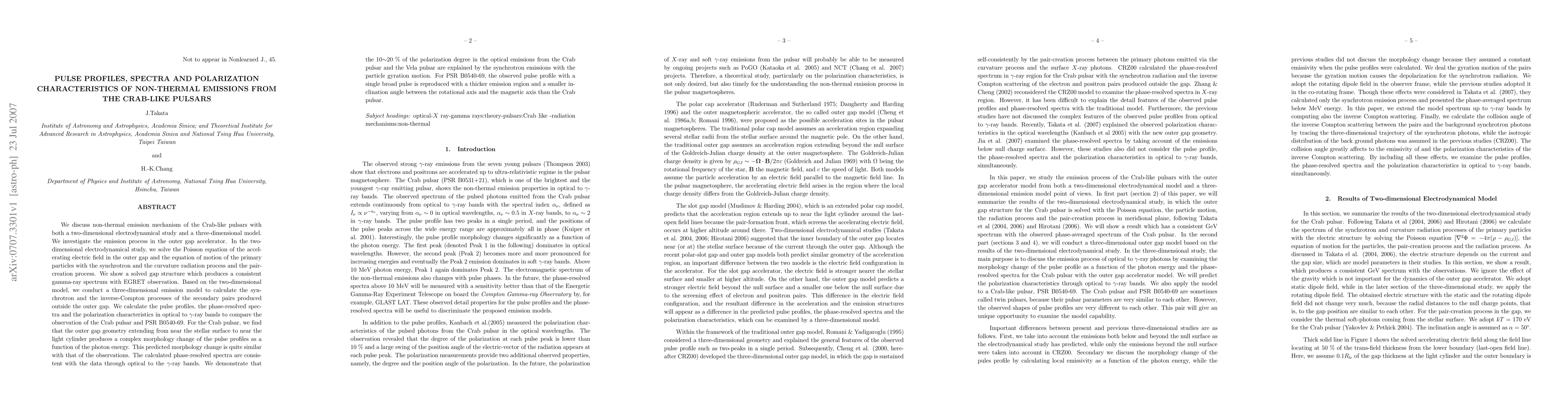 We discuss non-thermal emission mechanism of the Crab-like pulsars with both a two-dimensional electrodynamical study and a three-dimensional model. We investigate the emission process in the outer gap accelerator. In the two-dimensional electrodynamical study, we solve the Poisson equation of the accelerating electric field in the outer gap and the equation of motion of the primary particles with the synchrotron and the curvature radiation process and the pair-creation process. We show a solved gap structure which produces a consistent gamma-ray spectrum with EGRET observation. Based on the two-dimensional model, we conduct a three-dimensional emission model to calculate the synchrotron and the inverse-Compton processes of the secondary pairs produced outside the outer gap. We calculate the pulse profiles, the phase-resolved spectra and the polarization characteristics in optical to $\gamma$-ray bands to compare the observation of the Crab pulsar and PSR B0540-69. For the Crab pulsar, we find that the outer gap geometry extending from near the stellar surface to near the light cylinder produces a complex morphology change of the pulse profiles as a function of the photon energy. This predicted morphology change is quite similar with that of the observations. The calculated phase-resolved spectra are consistent with the data through optical to the $\gamma$-ray bands. We demonstrate that the 10$\sim$20 % of the polarization degree in the optical emissions from the Crab pulsar and the Vela pulsar are explained by the synchrotron emissions with the particle gyration motion.