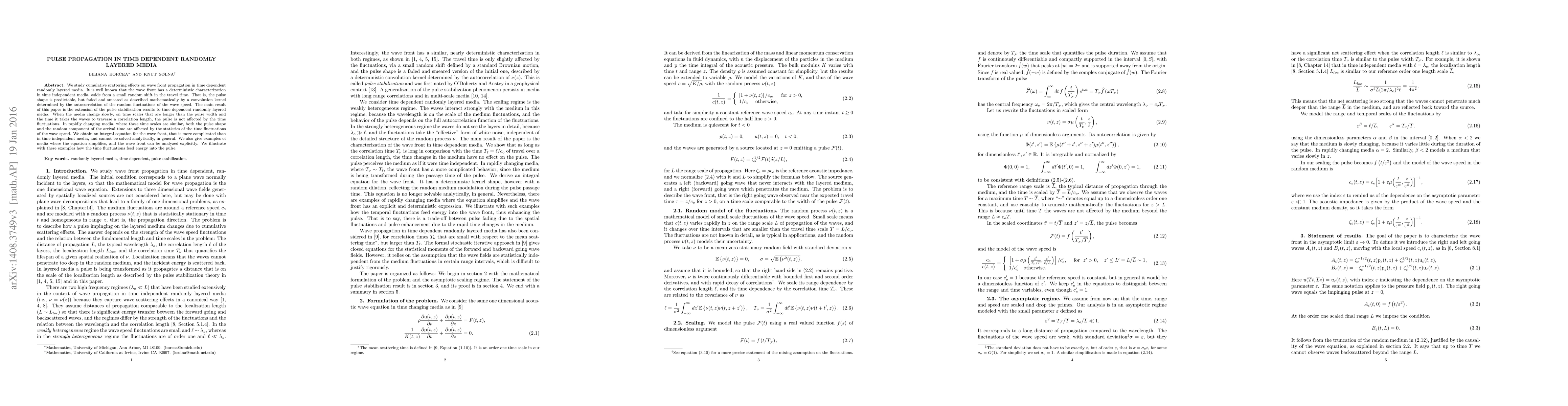 This paper extends the understanding of wave front propagation in time-dependent randomly layered media, showing that slow media changes stabilize pulses, while rapid changes affect both pulse shape and arrival time. An integral equation for the wave front is derived, though it's generally non-analytic, with specific examples allowing for more explicit analysis.