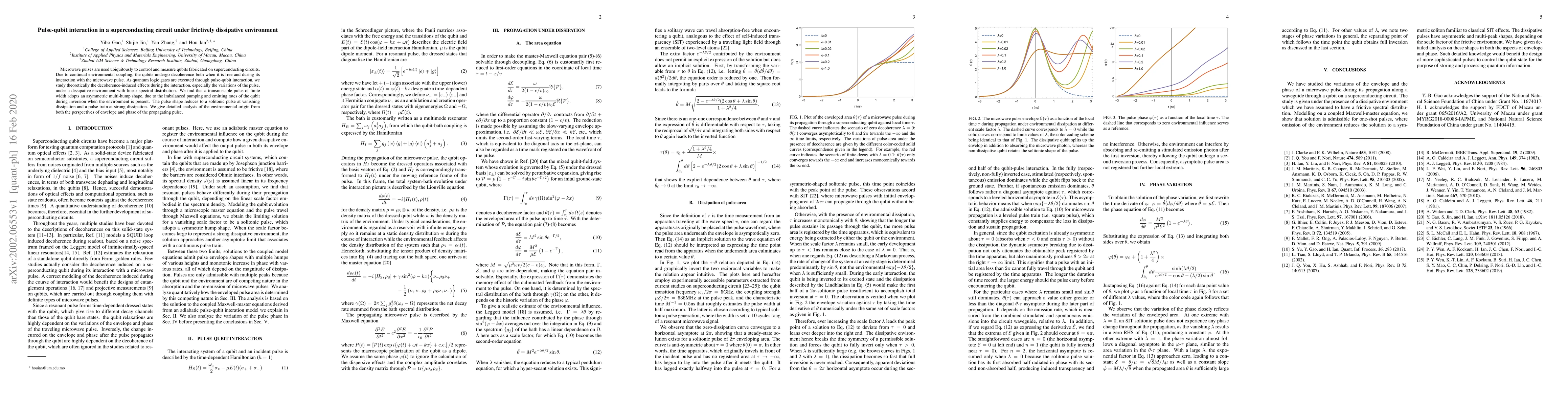 Microwave pulses are used ubiquitously to control and measure qubits fabricated on superconducting circuits. Due to continual environmental coupling, the qubits undergo decoherence both when it is free and during its interaction with the microwave pulse. As quantum logic gates are executed through pulse-qubit interaction, we study theoretically the decoherence-induced effects during the interaction, especially the variations of the pulse, under a dissipative environment with linear spectral distribution. We find that a transmissible pulse of finite width adopts an asymmetric multi-hump shape, due to the imbalanced pumping and emitting rates of the qubit during inversion when the environment is present. The pulse shape reduces to a solitonic pulse at vanishing dissipation and a pulse train at strong dissipation. We give detailed analysis of the environmental origin from both the perspectives of envelope and phase of the propagating pulse.