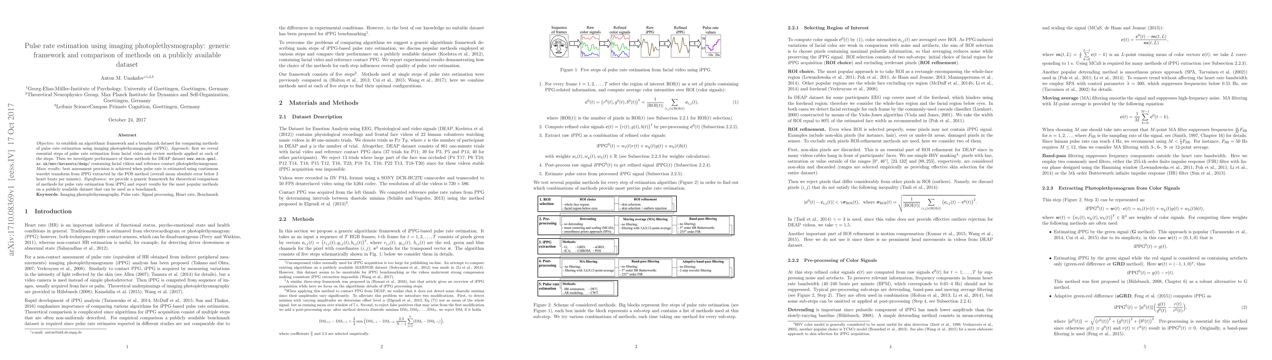 This research establishes a framework for pulse rate estimation from facial videos, finding that the continuous wavelet transform method using the POS (Per-Pixel Optical Strain) extracted iPPG yields the highest accuracy with errors below 2 beats per minute. It also presents a benchmark dataset (DEAP) for comparing such methods.