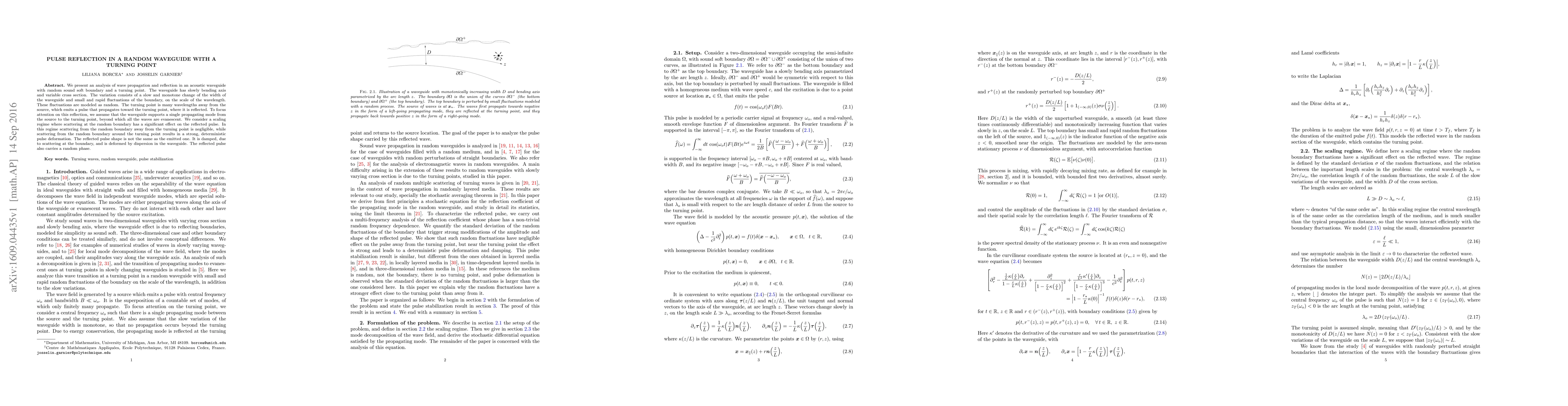 This paper analyzes wave propagation and reflection in a random acoustic waveguide with a turning point, focusing on the effect of random boundary fluctuations on pulse reflection. The study reveals that scattering near the turning point significantly alters the reflected pulse, which becomes damped and deformed, carrying a random phase.